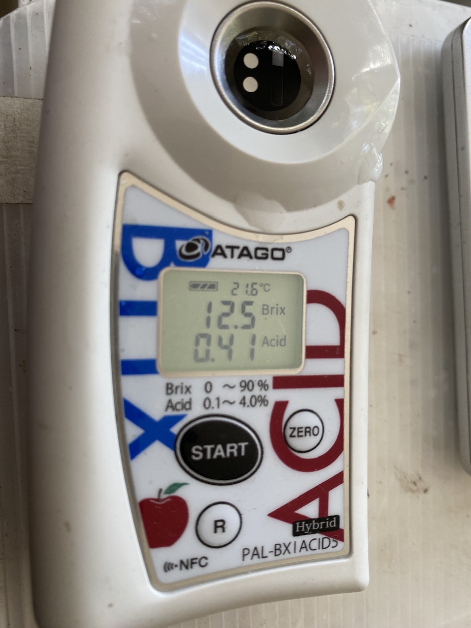 Наконец-то купил канистру дистиллированной воды чтоб померить сахаро-кислотный индекс (СКИ) сока яблок. Обычный рефрактометр даёт такие же показатели сахаристости. Результат немного удивил.
