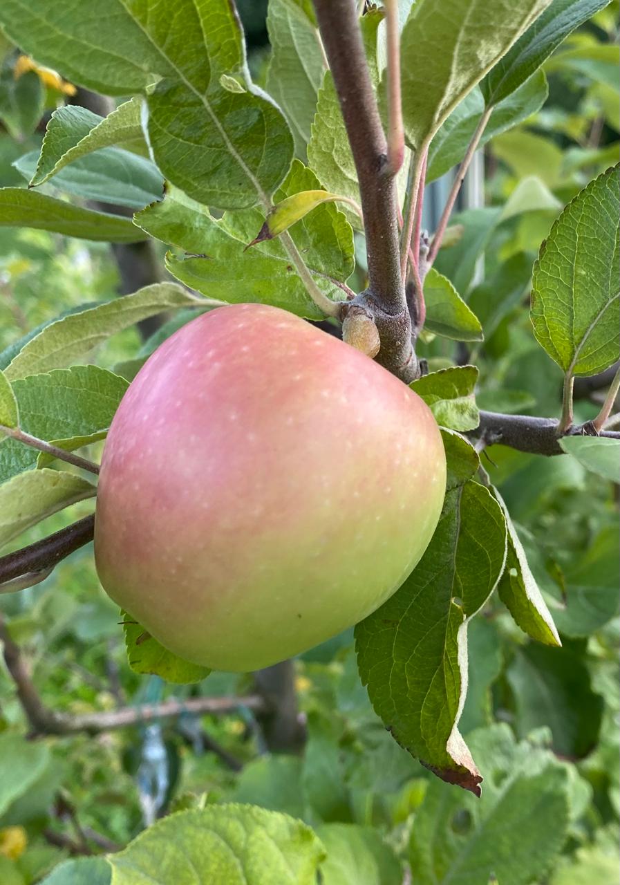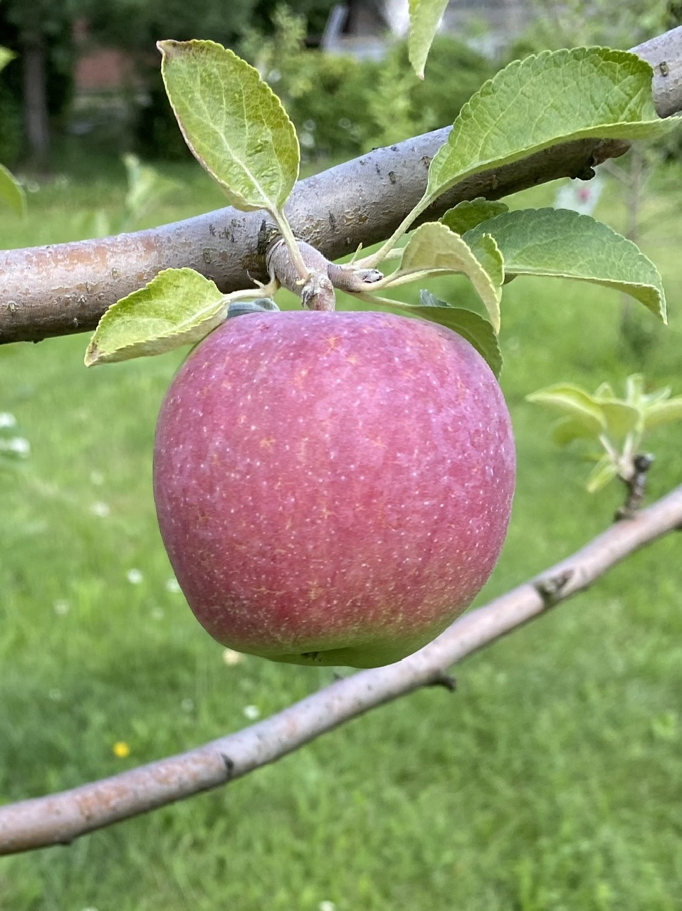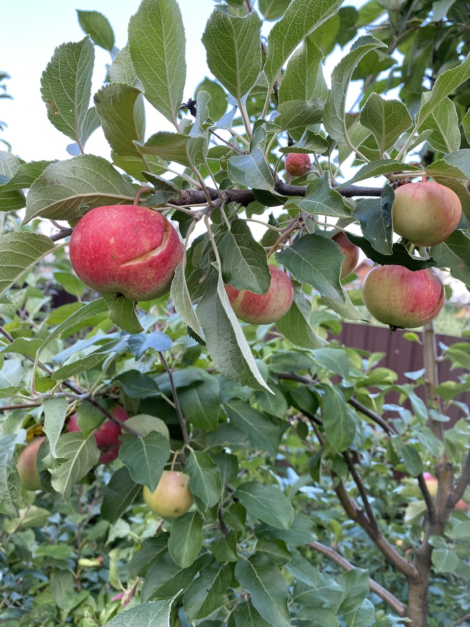 Коллега Энди Таккер, при всём уважении на вашем фото перегруженная ветка, отсюда мельчание яблок. На ветке с плодами должен быть прирост, тогда они получаются качественные (крупные и вкусные). Это достигается в первую очередь обрезкой весной, т.н. нормировка ветки с плодушками если видите что она имеет (или вообще не имеет) слабый прирост. А также и прореживание завязей летом. Если ветка наклоняется к земле под тяжестью плодов это явный признак что она перегружена и надо стараться не допускать такого.Энди Таккер писал(а): ↑04.08.2024, 12:52 Раннеосенний Вильямс Прайд на солнце окрасился уже полностью и даже сформировал фирменный восковой налет. В этом наверное будет позднелетним сортом.
