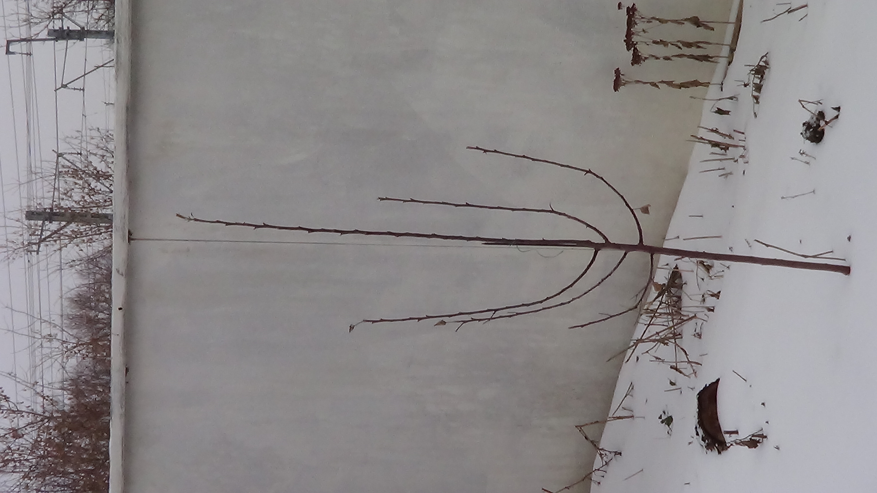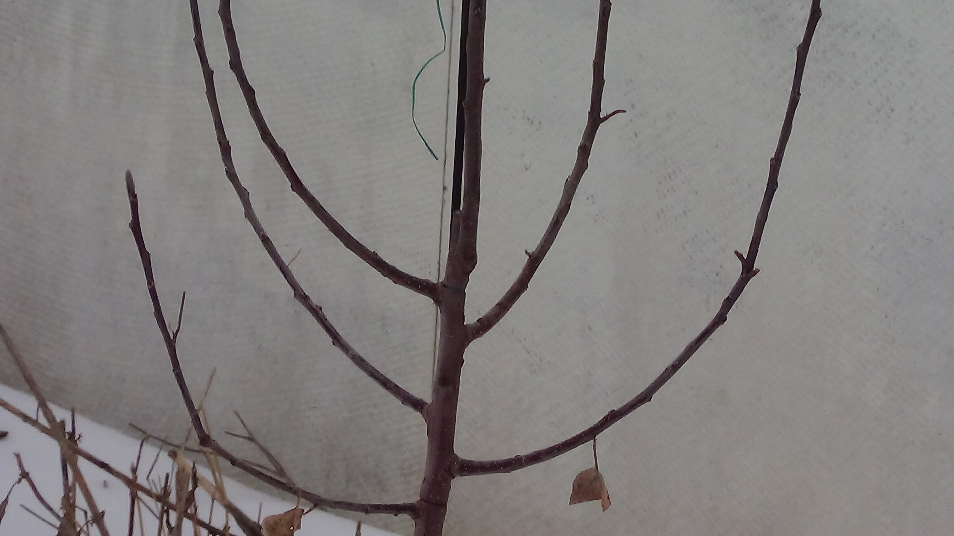 Есть два саженца яблони прошлого года посадки. Нужен совет, как правильно произвести обрезку для формирования кроны У этого саженца выросло три веточки, причем одна ( крайняя левая на фото) опережала рост двух других. Я ее летом подрезал, а она все равно доминировала. Предполагаю, ее нужно обрезать, оставив 3-4 почки и укоротить ЦП.