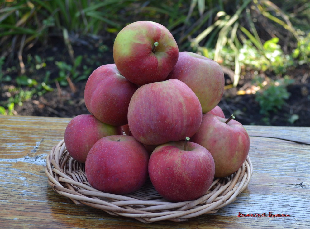 Яблоки очень красивые, светловишнёвые, хрустят очень сильно целый год. Такой срок хранения заявлен создателями.