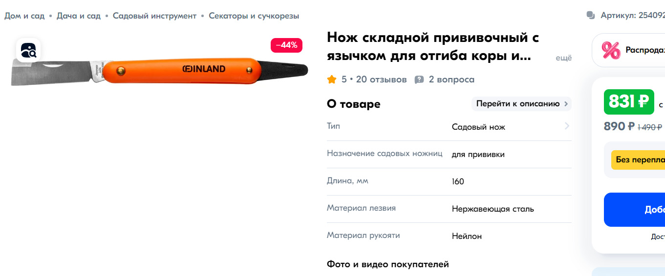 К сожалению, единственный готовый прививочный нож из твердой нержавейки (58 HRC) недоступен для поставки в РФ.