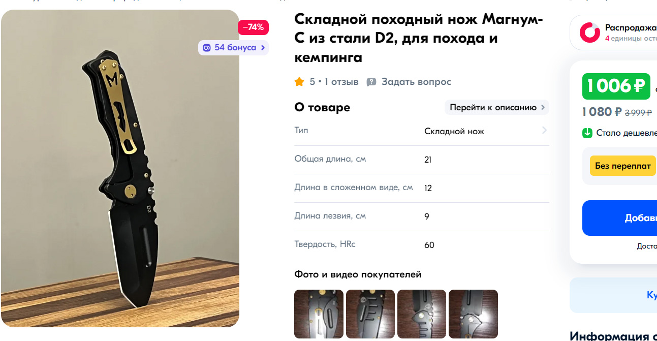 В зависимости от неё или от её отсутствия цена ножа может отличаться вдвое.