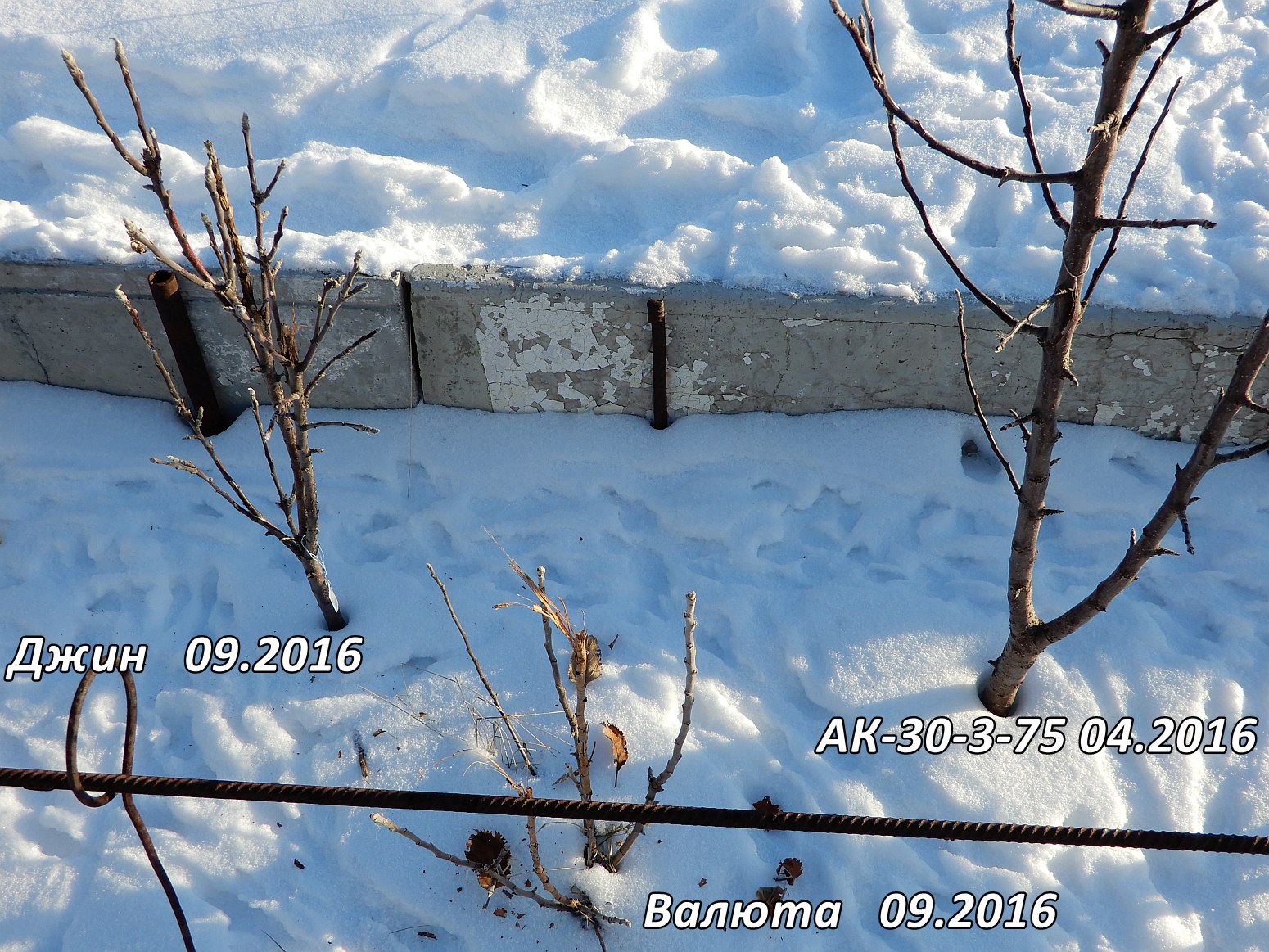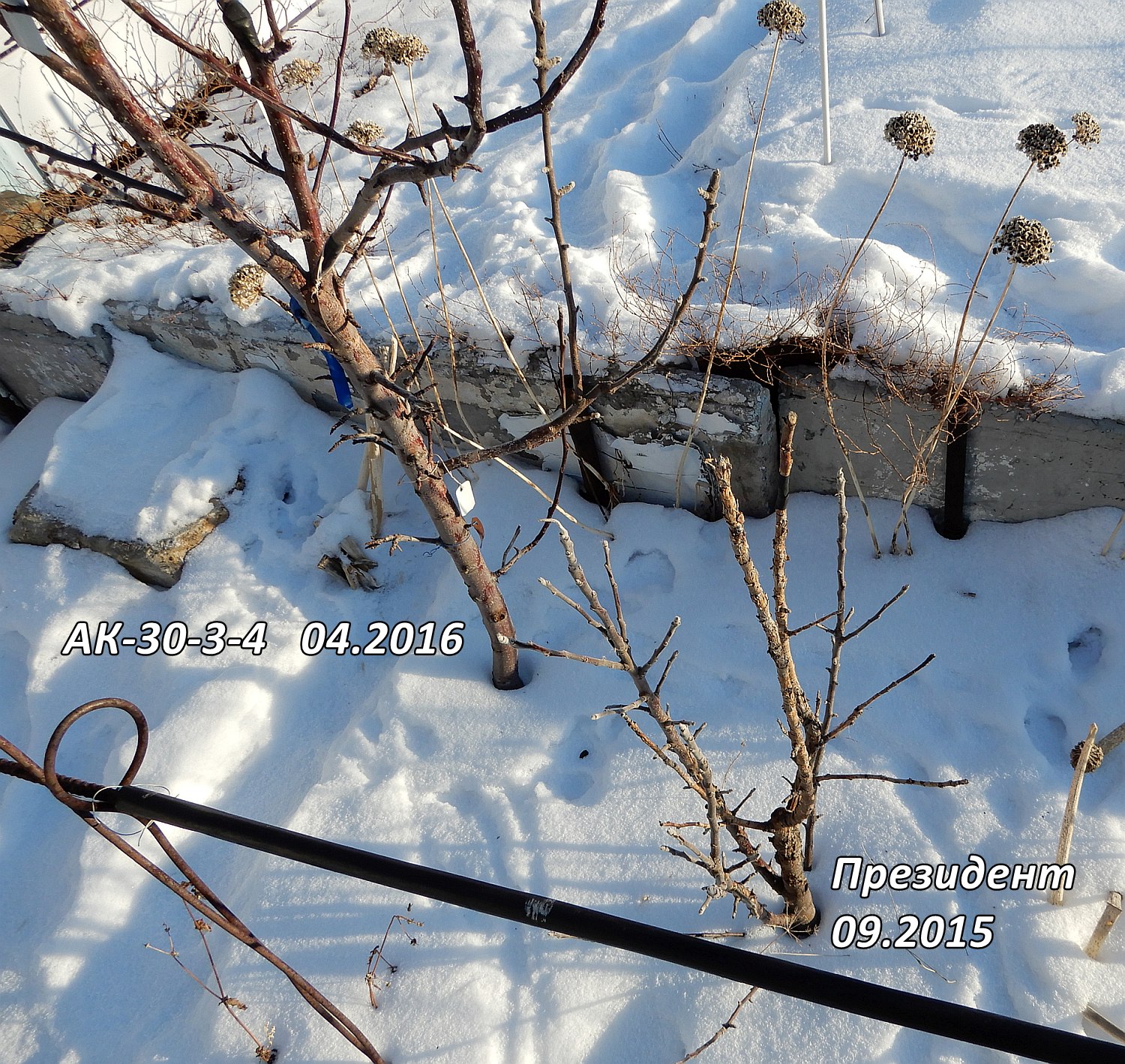 АК-30-3-4 использую для прививки разных колонн и не колонн, штамб продолжает ежегодно плодоносить. Президент и Валюта подмерзают по уровню снега. Снимки от 03.12.2019.