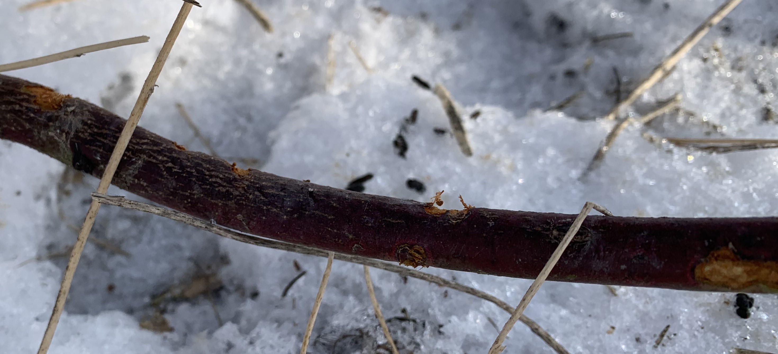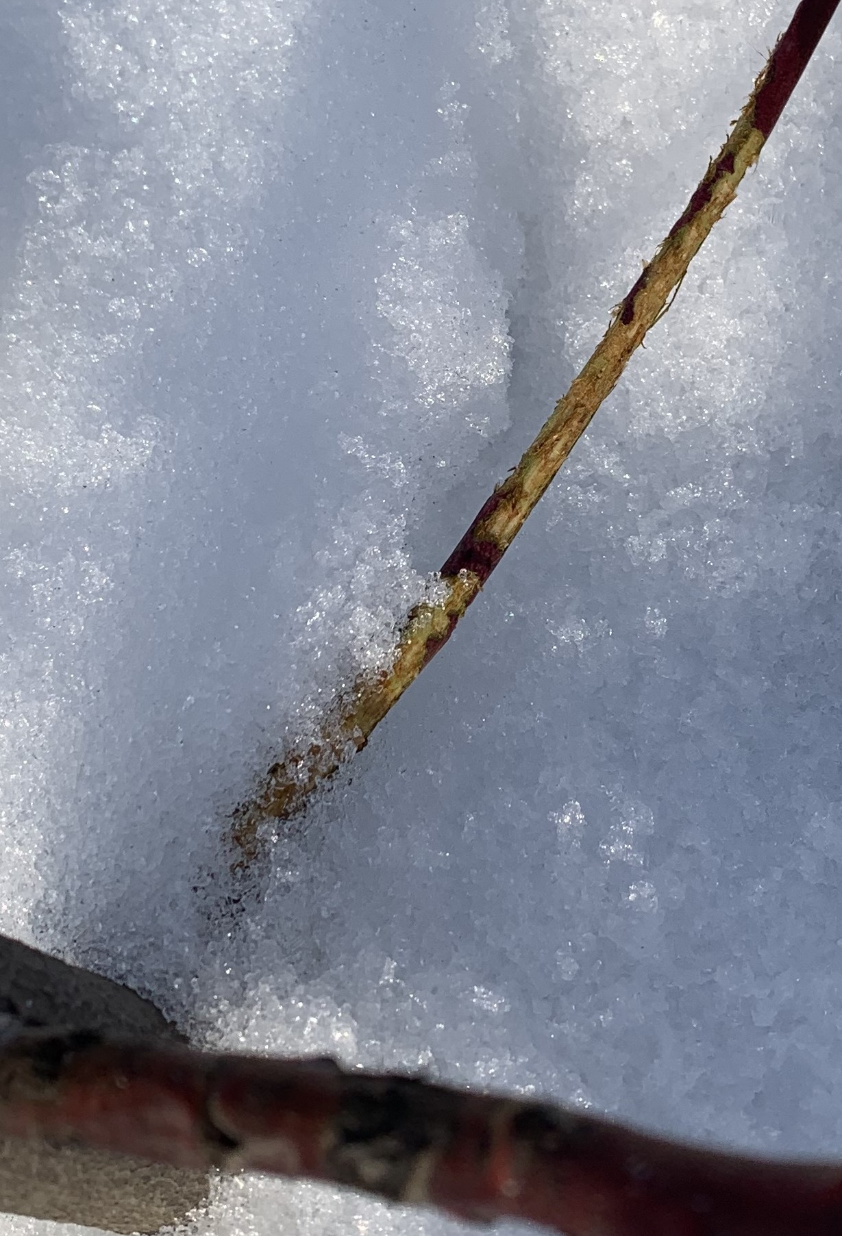 Сам не пойму зачем с укрытием тянул до последнего, всё же нектарин штука интересная, а теперь придется его заново. Кому отправлял черенки этого нектарина - имейте в виду, морозостойкость заметно ниже чем у многих других сортов, видимо в пределах -20...-22. В том же укрытии рядом два других персика и вроде нормально пережили, хотя по цветочным почкам будет понятно ближе к маю только.