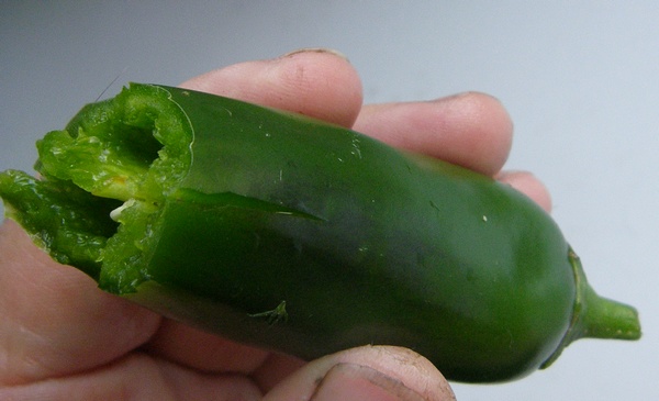 В этом году насажала острых перцев, в т.ч. сХупты, сначала он был номерной, потом там ему присвоили название F1Пикантион. Вчера в саду увидела на одной перчинке вершинную гниль (помидоры кормила кальцием с бором, а вот острому перцу не досталось), сорвала. Перчинка была уже хорошая. скоро поспеть должна была. Срезала испорченный носик, от остального осторожно попробовала, а он совсем неострый! Начала отрезать помаленьку, приближаясь к хостику, и только на последних 1,5 см перчины появилась острота. То есть этот Пикантион оказался слабоострым.