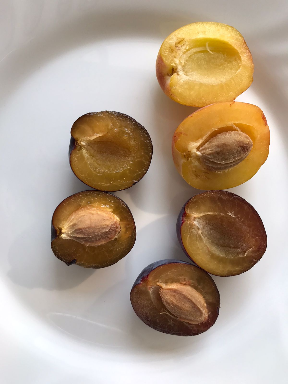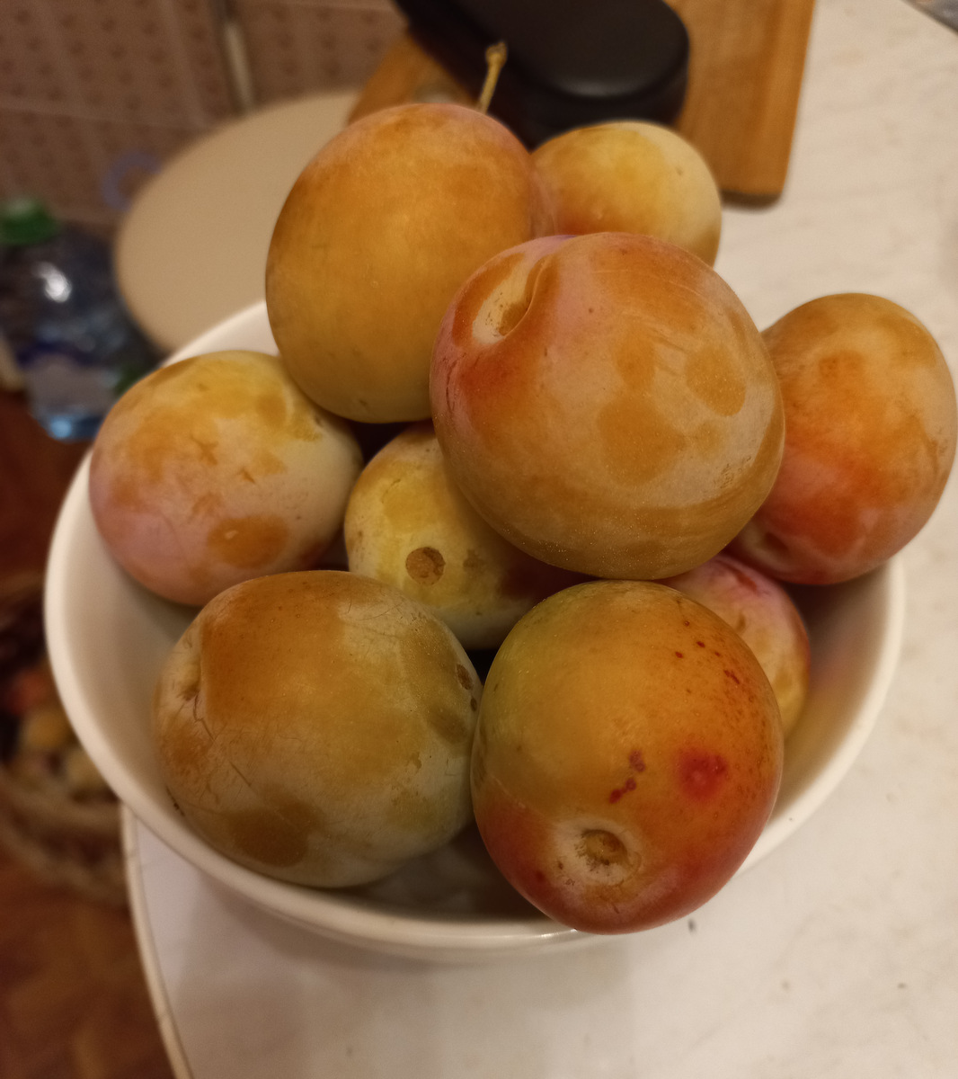 Утро понравилось больше субъективно- очень нарядный желтый цвет с легким румянцем. Вкус сладкий у мякоти обеих слив, хотя самая сладкая слива, что поменьше (фото на тарелке), шкурка кисловата у всех, но в итоге все гармонично. Едим в свежем виде и немного компотов сделали.