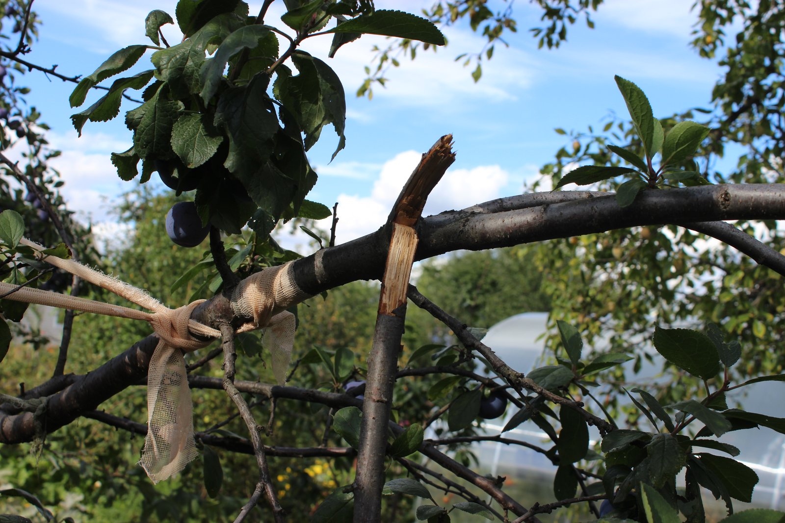 С запозданием более чем на 2 недели созрел Ренклод советский. На даче взрослое дерево - из-за особенностей "метловидной" формы не обошлось без обломов ветвей.