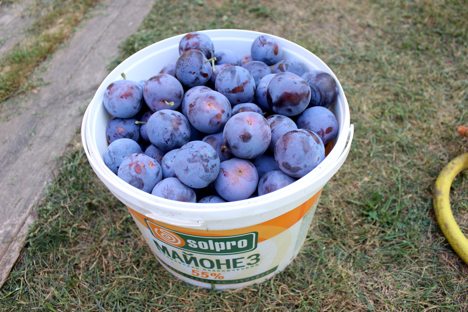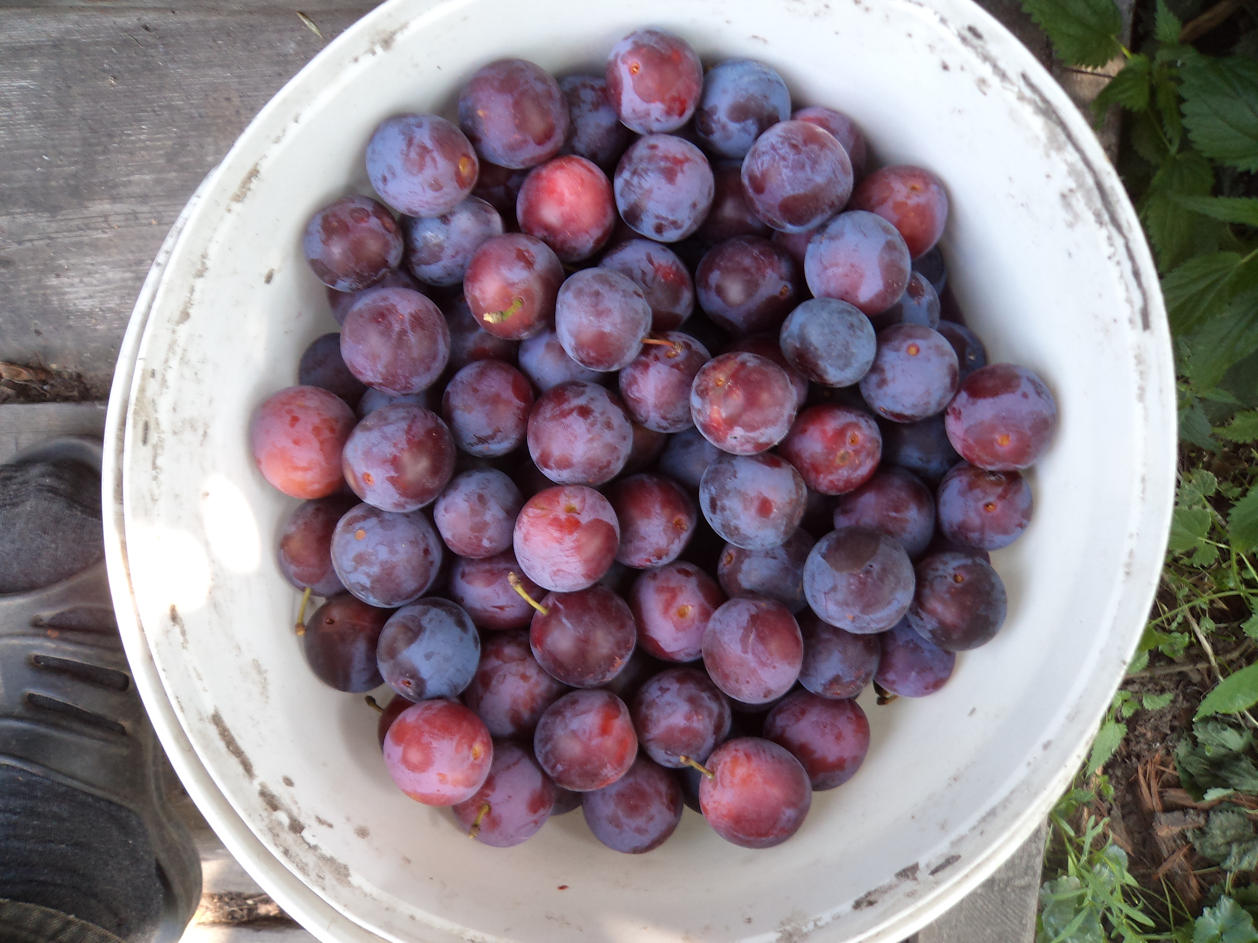 Слива Эдинбургская, сегодняшний сбор на даче. Не появлялась там с начала лета, много сухой гнили на дереве, паданков, да и собирать видно помогали))). Собрала там, где дотянулась, верхушка с хорошими крупными сливами осталась не собранной, всего 6кг. Сорт сохраняем с конца 80-х, отец приобретал в клубе садоводов, так что сортовая чистота гарантирована. Обильно заплодоносила после прививки впервые, один ствол обломился- то ли от тяжести, то ли кто то наклонил при сборе. Привита была со старого дерева на дикую поросль лет 7назад, росла без всякого ухода, обработок и обрезки, как полынь в поле)). Мясистая, вкусная, но в этом году из-за засухи не такая крупная и сочная, какой я ее помню с юности до эпохи "изменения климата".