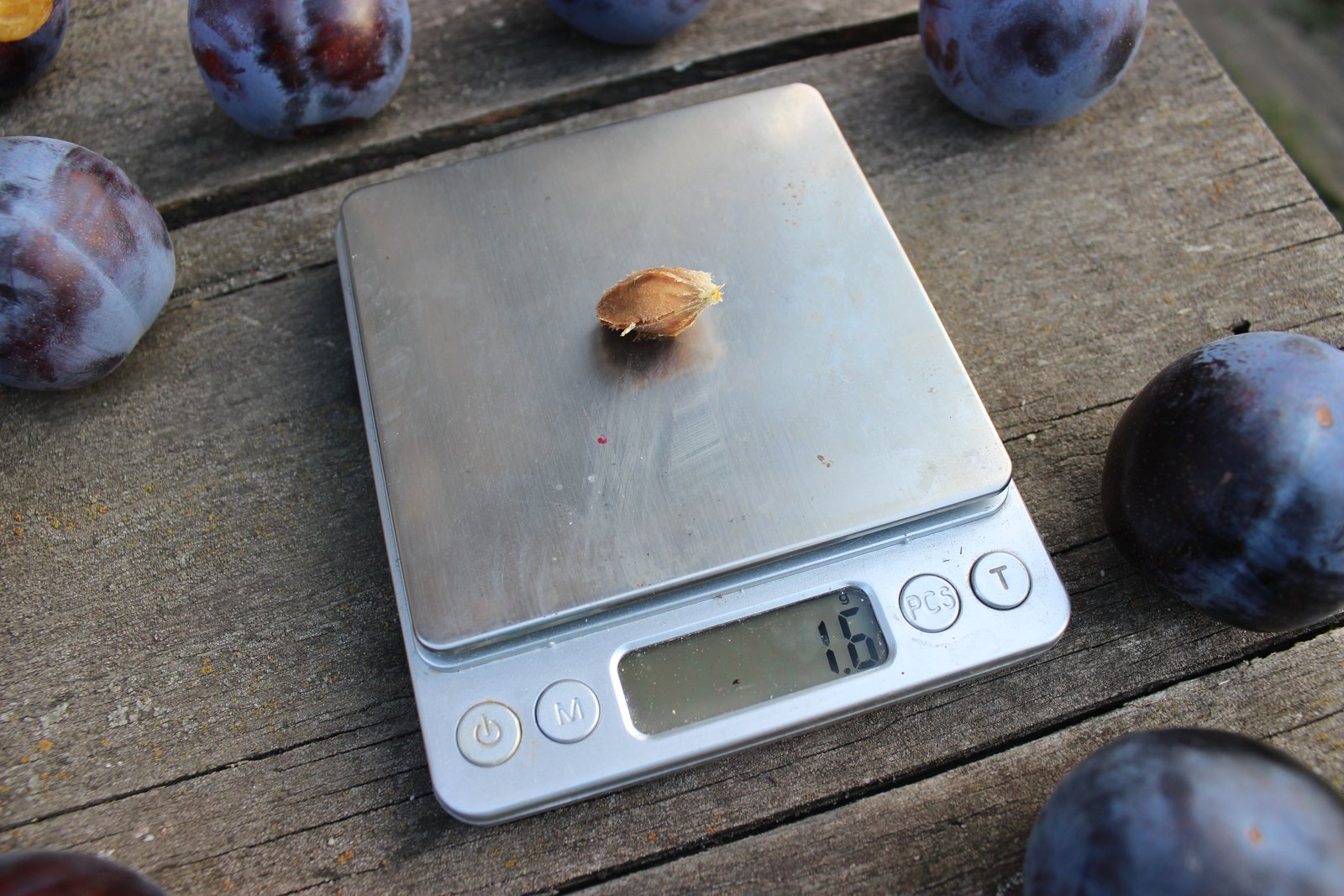 Не поняла, что невероятного? Вес плодов? У меня тоже слива мелкая. Местная венгерка - грамм до 15, алыча Мара - 18-22 грамма (прямо сейчас взвесила). Крупная слива (для меня крупная) - грамм 20 (вот, на весах). Сорт не знаю, куплена как "Поздняя" - действительно, созревает чуть позже нашей привычной венгерки, и слаще. Вот только к октябрю закончилась. Еще была Вашингтон (под таким названием куплена). Вот она для меня совсем крупняк. Сладкая, только растрескалась вся, хотя дождей не было. Понравилась, хотя Dim оценил ее так: "Если сравнивать с Очаковской жёлтой - то как до Китая. У себя убрал." (Наверное, я слаще морковки ничего не едала