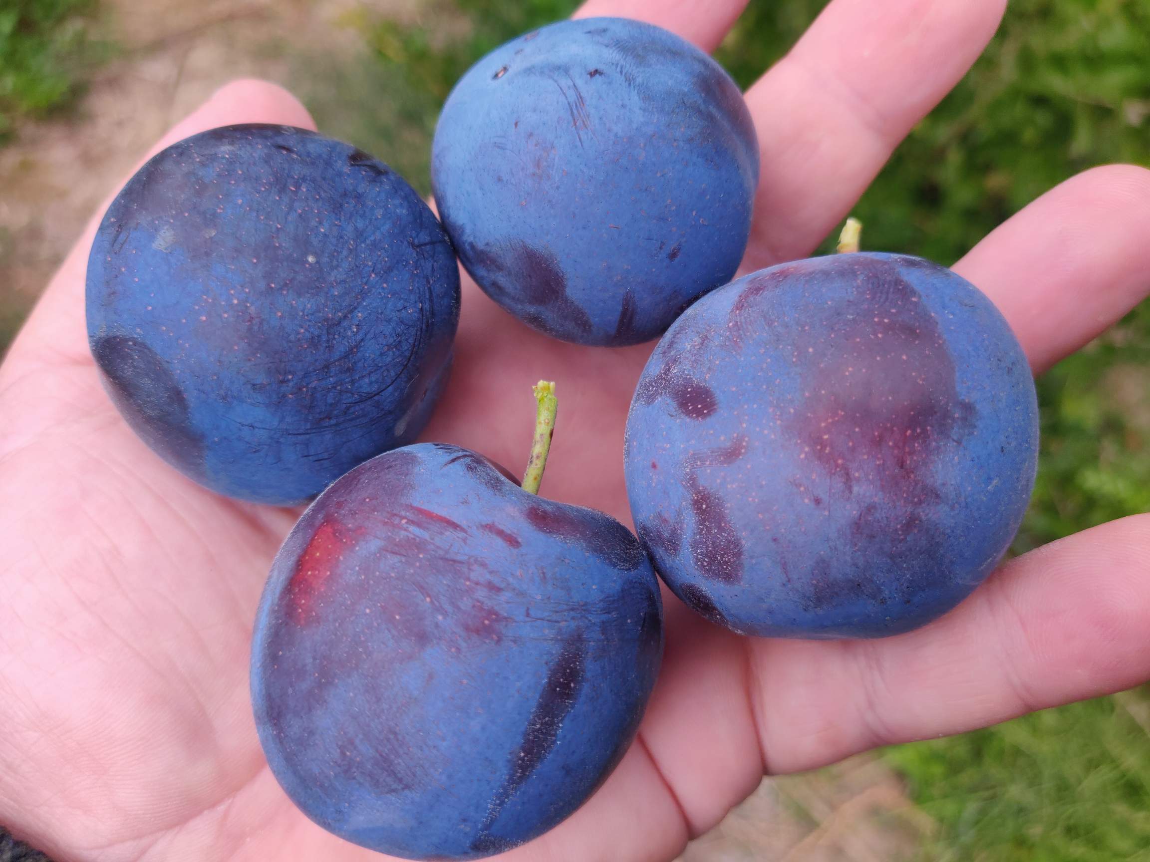 Понравился сорт 1738. Было несколько десятков плодов на привитых ветках, которые быстро были съедены, только последние успели сфотографировать. По вкусу сладкий, чуть кислинки есть в кожице. Мякоть плотная как для сливы, но при этом сочная - то что надо как по мне, всем тоже понравилось. Кожица чувствуется, но совсем не так сильно, как на гибридных сливах (Царская, Кубанская комета, и т.п.), вполне съедается слива целиком. На ветке держится хорошо, даже полностью созревшие. После сентябрьских дождей часть плодов треснула - это минус, других пока не заметил.
