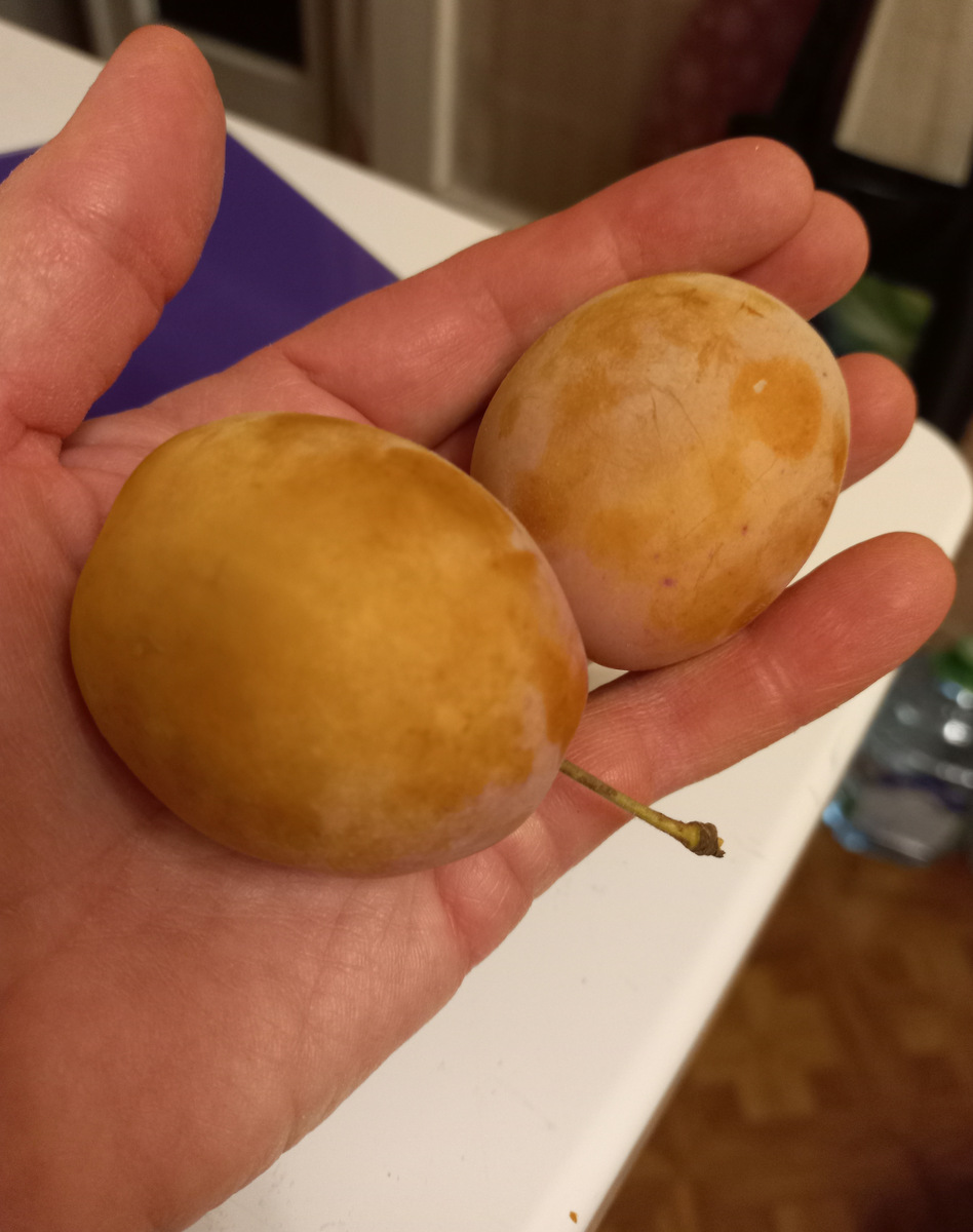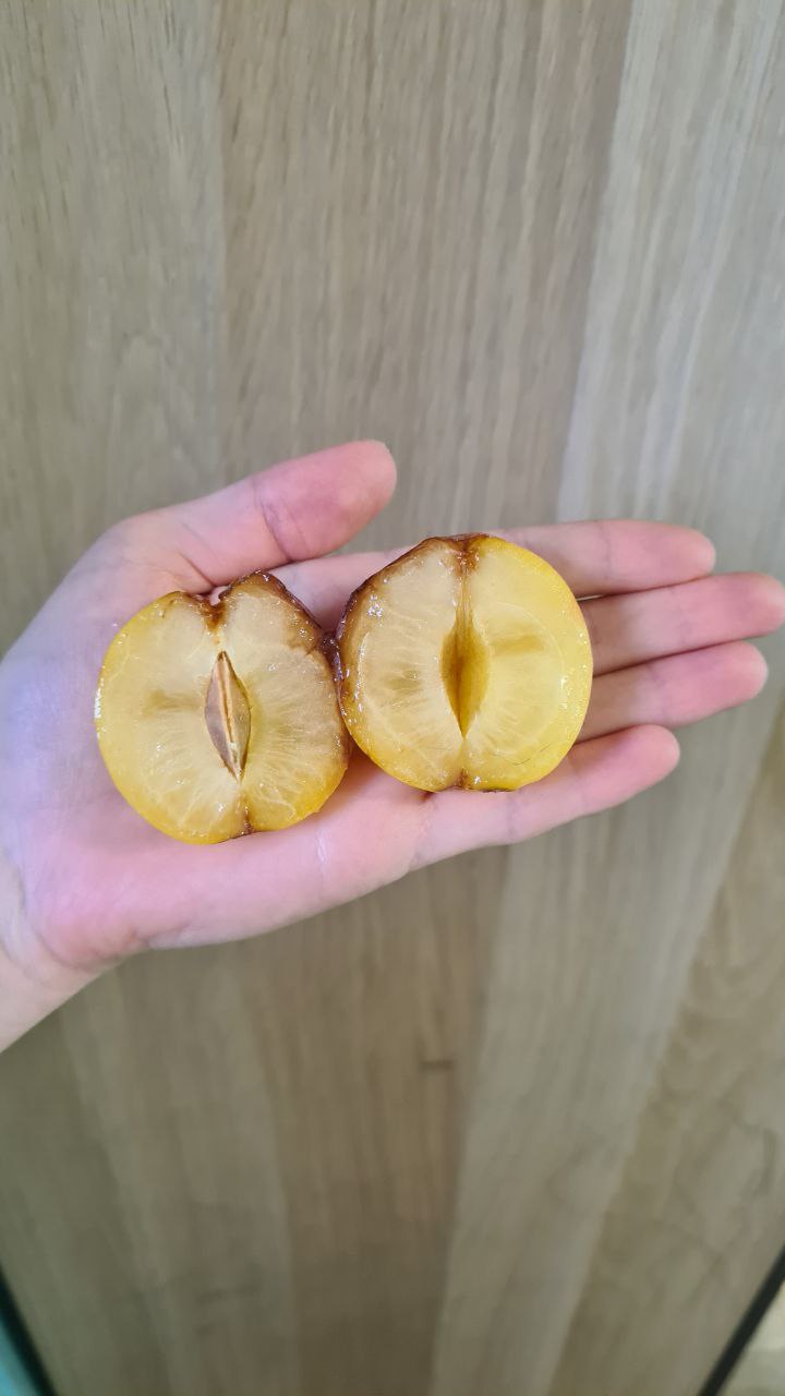 У меня не трескается. Кальцием нужно обрабатывать. Образец 1738 никогда не будет сортом, потому что имеет желтую окраску и для промышленного использования не пригоден. Плохая траспортабельность (на желтом цвете видны пятна, при темной окраске пятен не видно).pozitron писал(а): ↑24.09.2022, 21:07 Понравился сорт 1738. Было несколько десятков плодов на привитых ветках, которые быстро были съедены, только последние успели сфотографировать. По вкусу сладкий, чуть кислинки есть в кожице. Мякоть плотная как для сливы, но при этом сочная - то что надо как по мне, всем тоже понравилось. Кожица чувствуется, но совсем не так сильно, как на гибридных сливах (Царская, Кубанская комета, и т.п.), вполне съедается слива целиком. На ветке держится хорошо, даже полностью созревшие. После сентябрьских дождей часть плодов треснула - это минус, других пока не заметил.