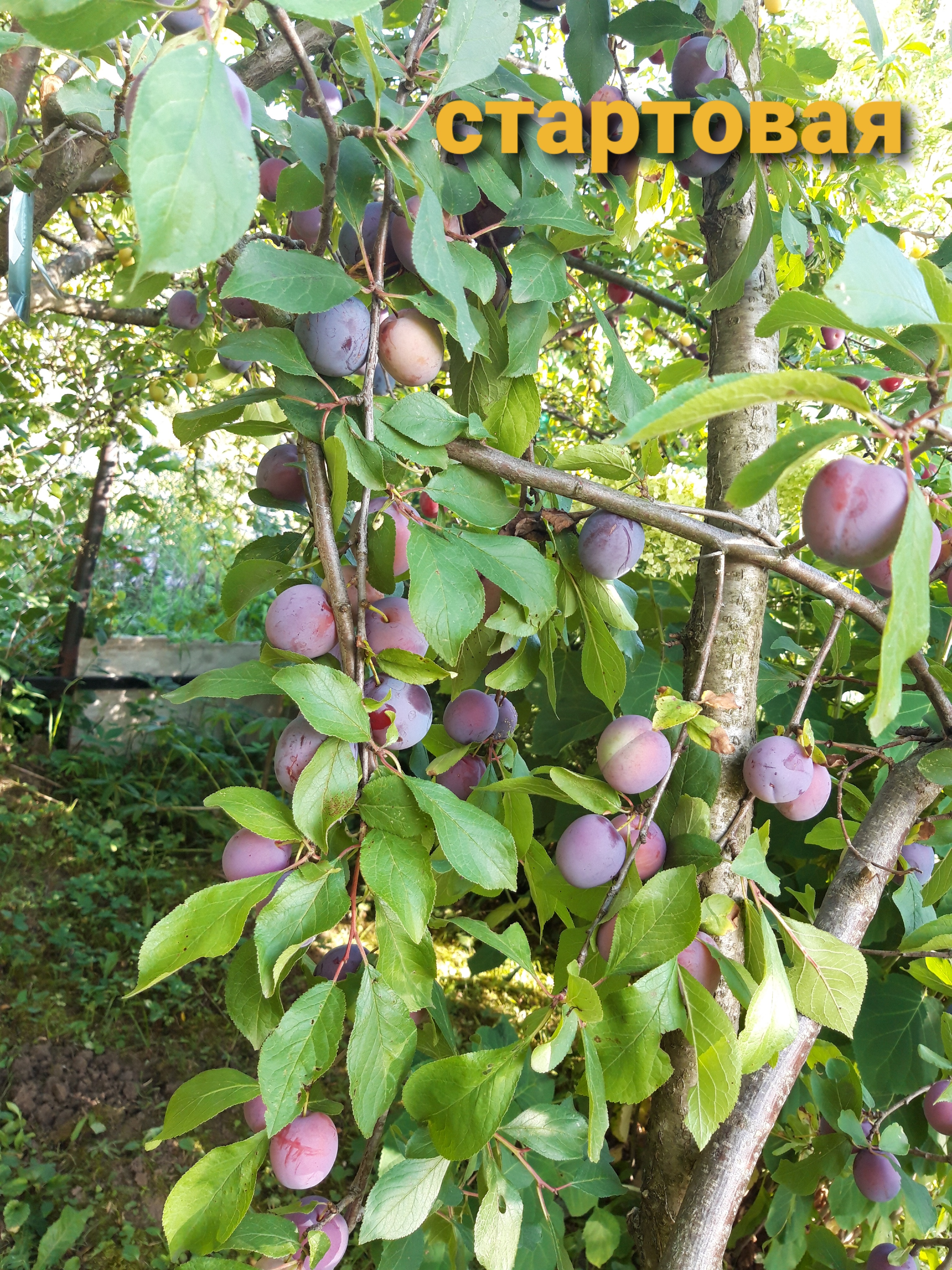 3. Слива Стартовая - массово поспела к 20 августа. Крупная, ранняя слива средней массой 40 гр. Кожица сине-пурпурная с сильным восковым налётом. Мякоть жёлтая, средней плотности. Вкусная, чисто сладкая, как первая слива пошла в охоточку (поспела раньше Скороспелки красной на неделю).