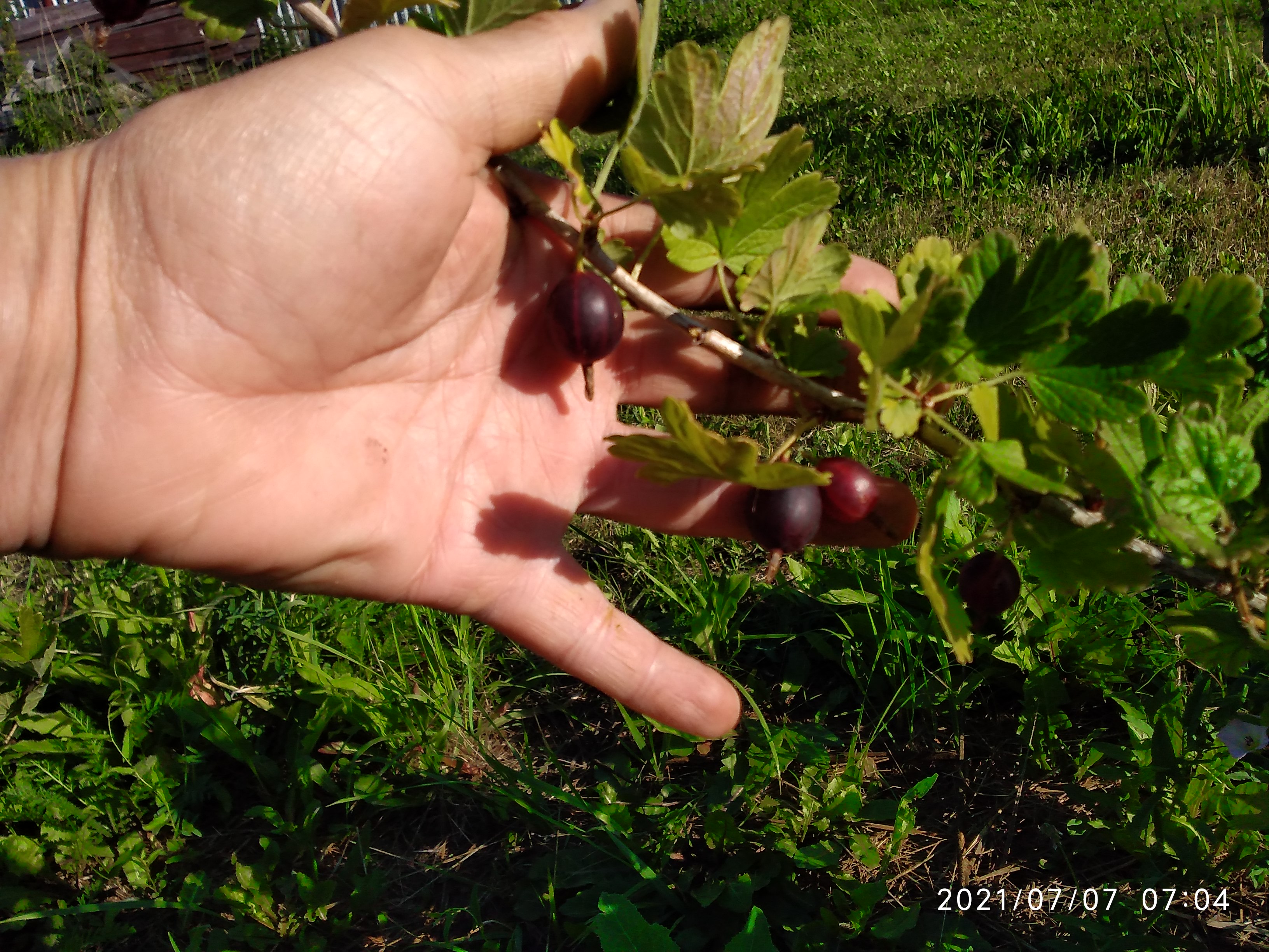Первое плодоношение крыжовника сорта Галатея, возраст куста 2 года. Минимум ухода, ничем не обрабатывался, только полив и рыхление по мере необходимости. Ягод примерно 2 десятка, крупные около 6 грамм. Вкус насыщенный сладкий с небольшой кислинкой.