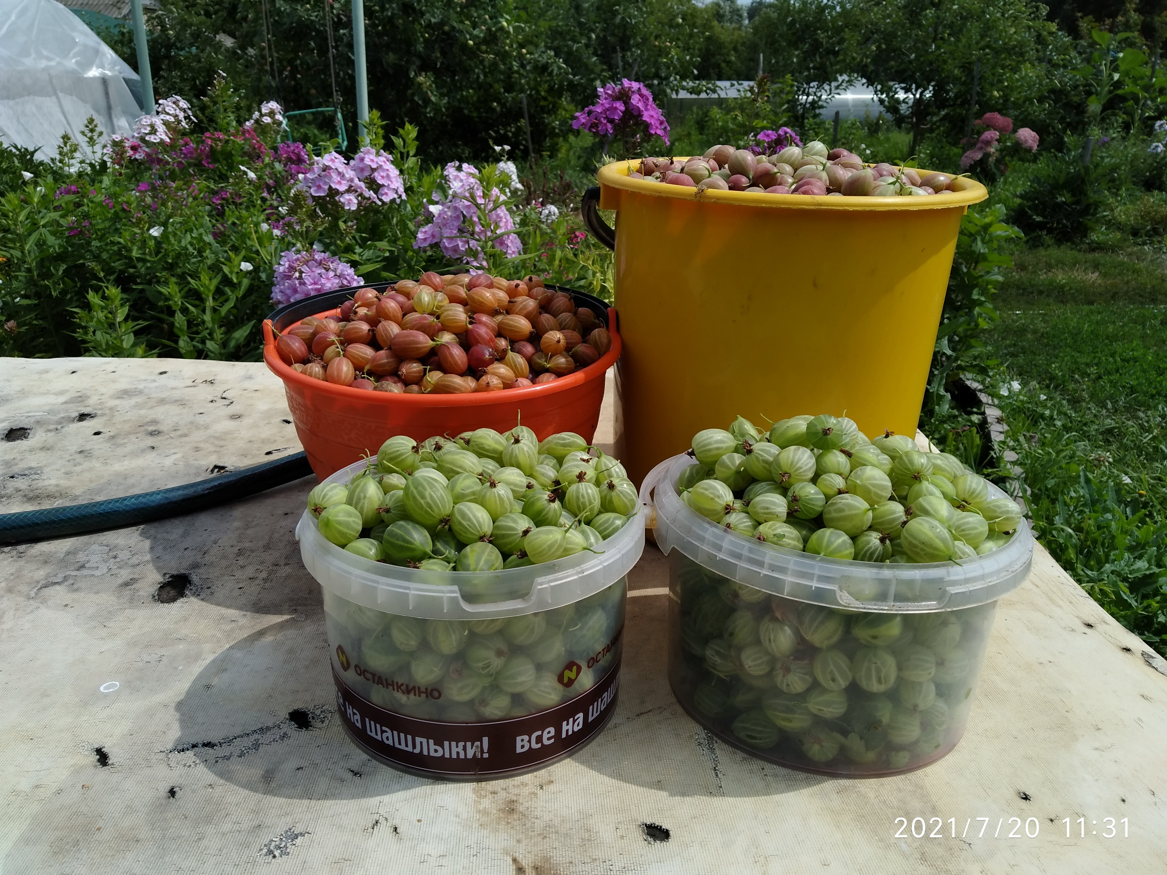 У нас начался сбор урожая Который красный это Колобок, зелёный Берил, жёлтый Янтарный. Крыжовник в этом году мельче чем в прошлом и его меньше по количеству, хотя подпромки были, полив капельный практически постоянно, но вкус слаще.