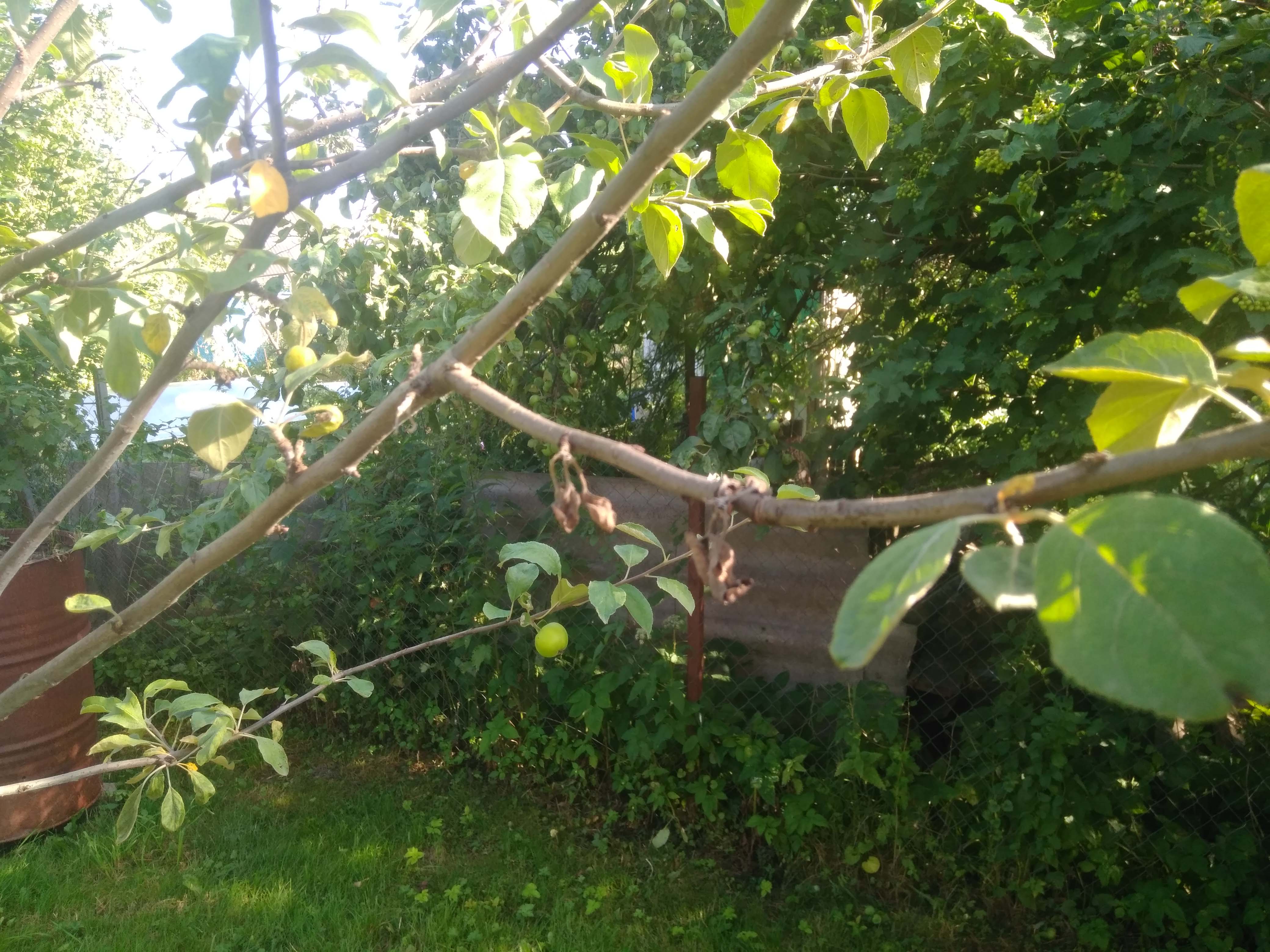 Яблоня не штрифель. Это осеннее полосатое. Два года назад отлично плодоносило, все ветки были ровные, трещин не было, яблоки одного сорта. Трещины и утоньшение появились в этом году. Этой весной цвела отлично, но яблоки пока остались на паре веток. Листья периодически желтеют и отлетают. Приложу состояния плодов и листвы сейчас.