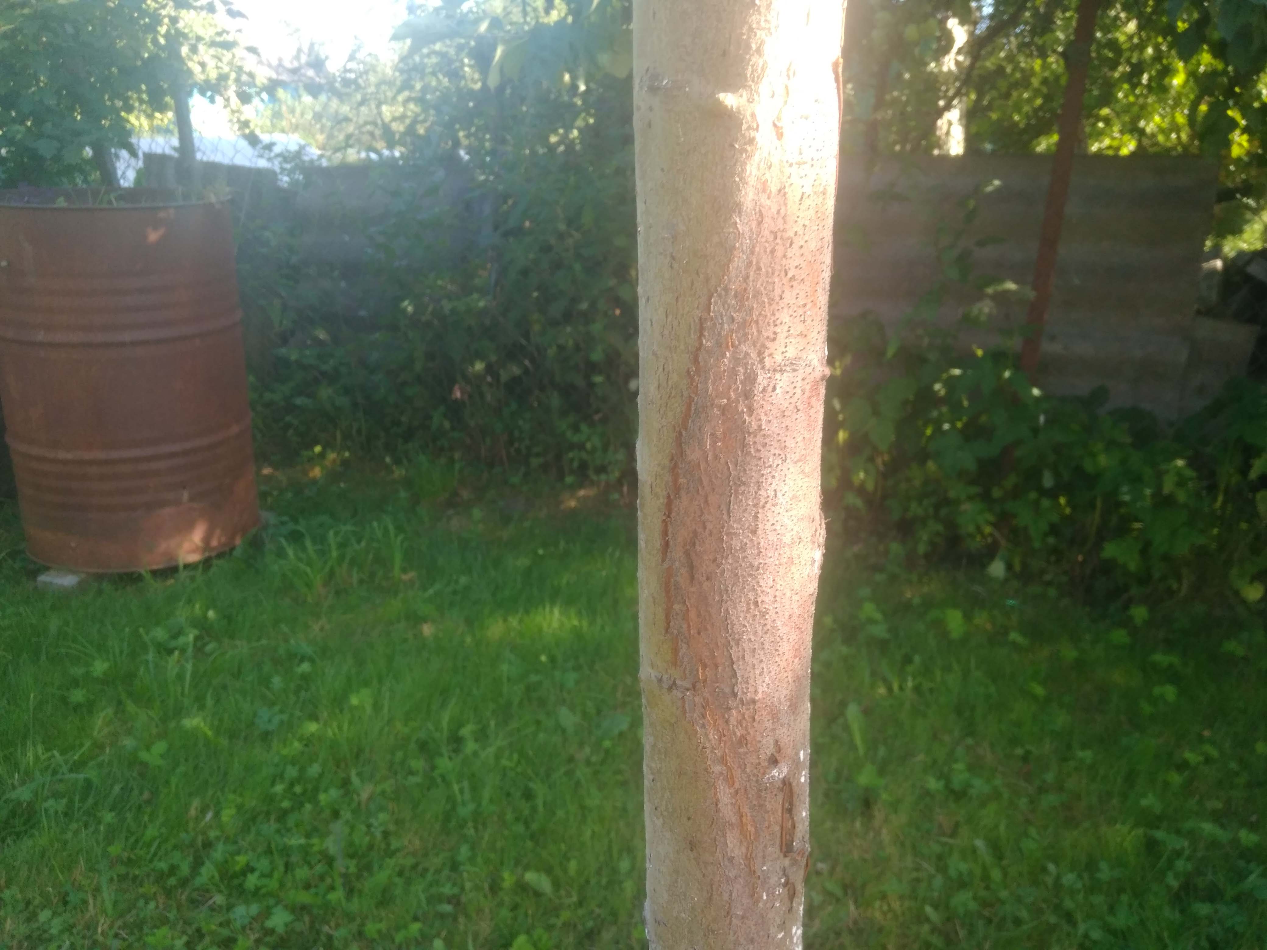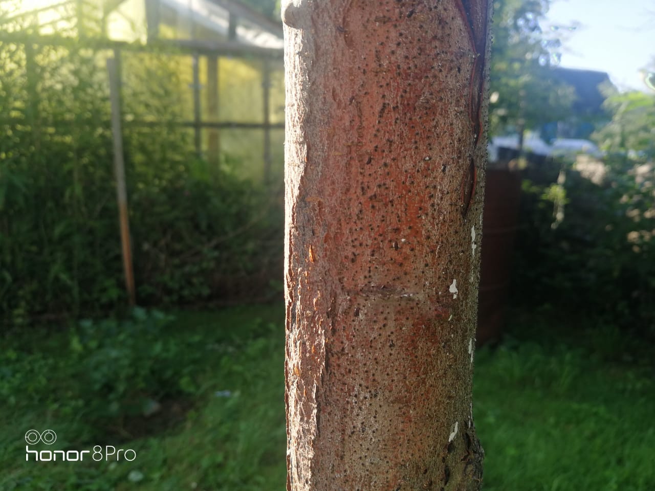 Вот фото поближе. Кора на ощупь крепкая, плотно прилегает к стволу, нет отслоений