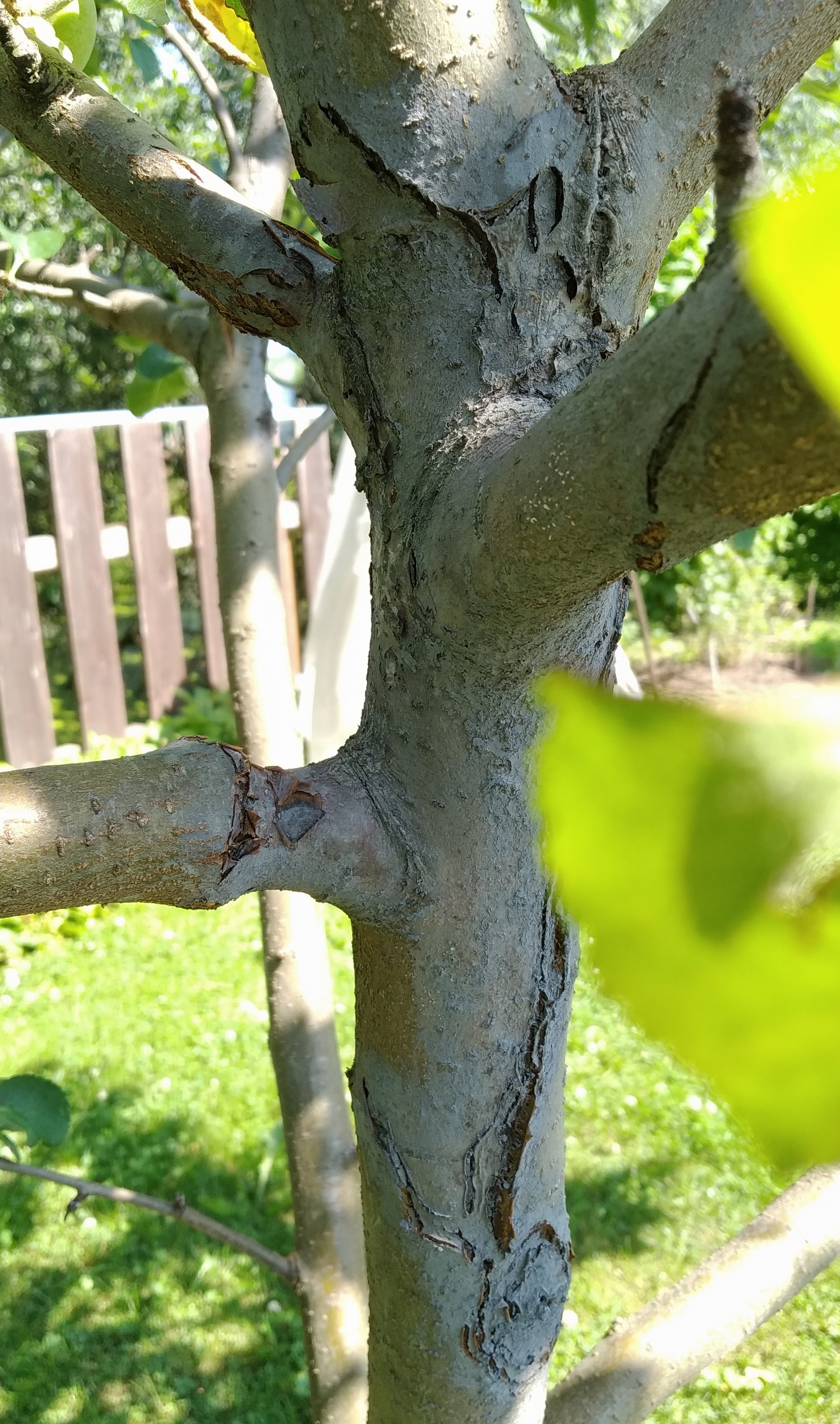 Здравствуйте. Подскажите, пожалуйста, что может быть с яблоней- трещины на стволе, утоньшение основания веток, листья частично желтеют, плоды пока развиваются, но на паре веток. Дереву около 7 лет, сорт осеннее полосатое. Возможно ли как то спасти яблоню?