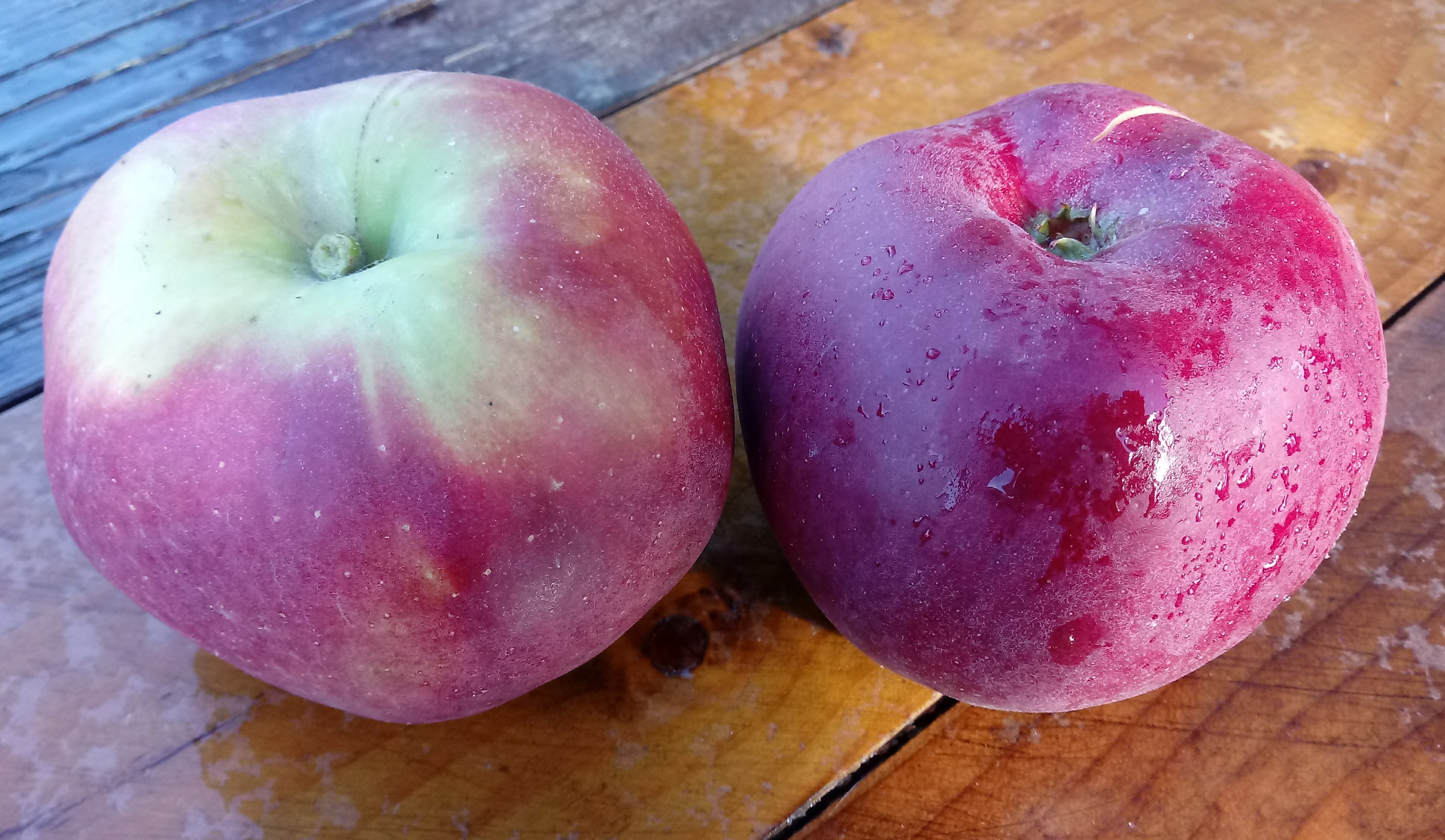 В прошлом году были сигналки Р.Крафт, пробовал поздней осенью, вкус показался странным - не десертным, но и не кислым. В этом году плодов больше, и теперь удалось установить - это что-то из морепродуктов (водоросли! , ну хотя бы не трава!). Может он и станет супервкусным в лежке через месяц или пару, но в потенциал не верится, консистенция мягче чем у Свит-16, что-то макинтошное есть.