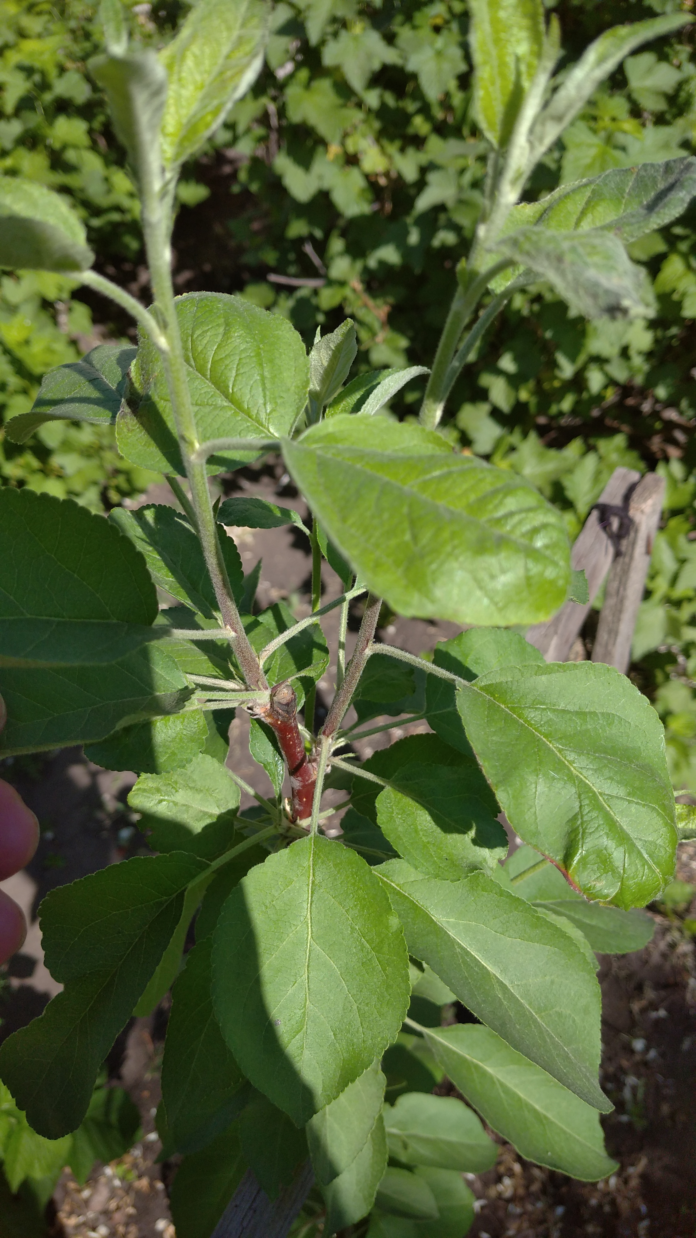 Молодая яблонька, с позапрошлого года у меня, прививка, вроде, на улице...но с самого начала она была низкой, откапываю. Выпустила новые стволики от корня. Что-то не так опять...