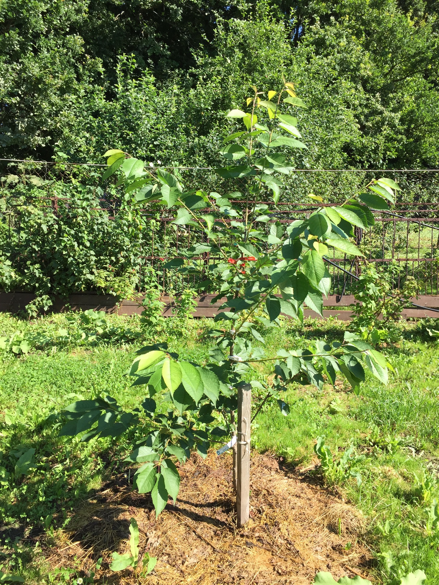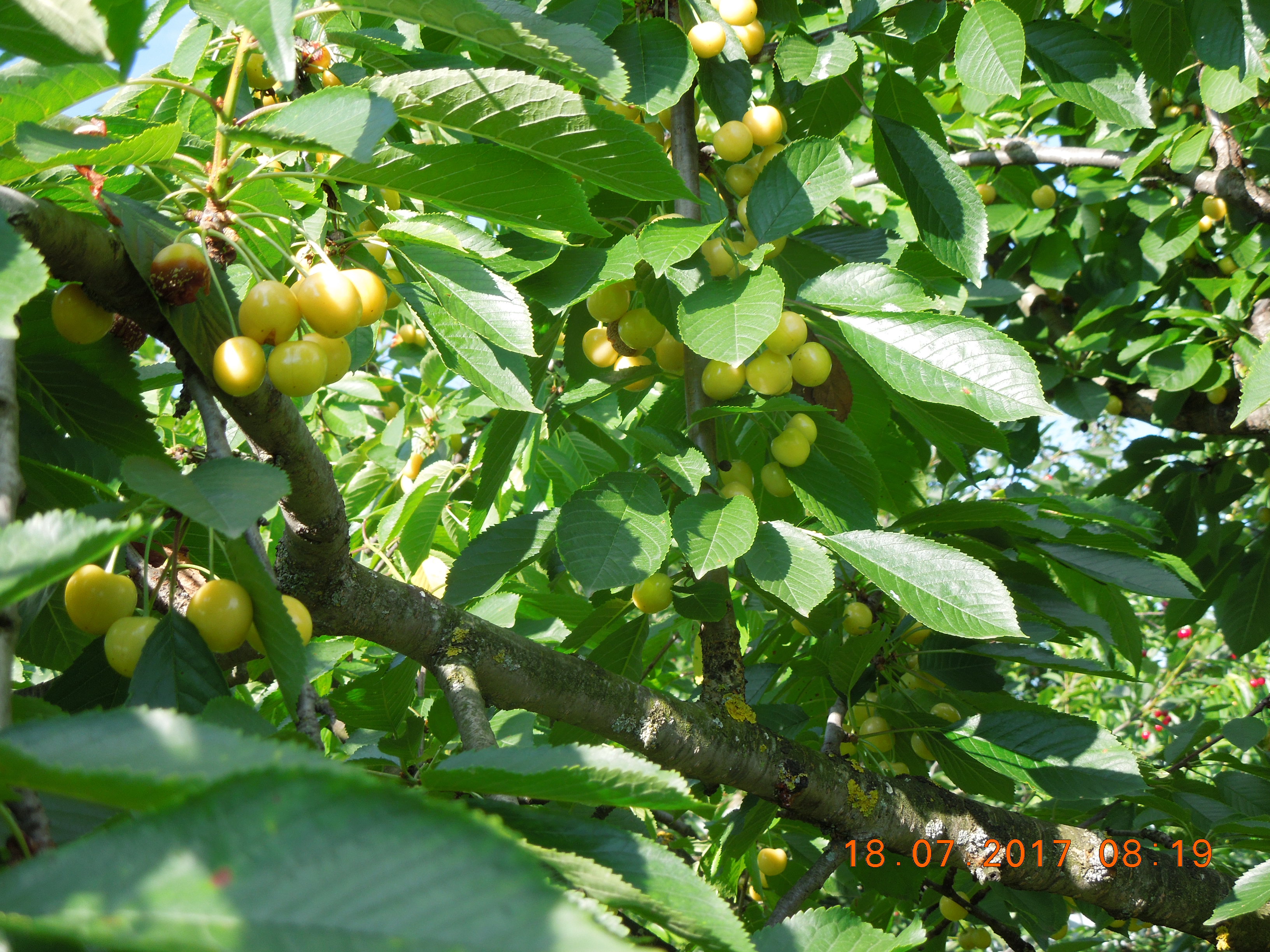 Есть ещё вишня Лотовка, пока на удивление здоровое растение, почему-то за 1,5 года только на одной веточке было чуток кляйстероспориоза. И черешня Кордия в горшке этого года покупки, но не факт что высажу её в ОГ. Тоже склонна к клястероспориозу.