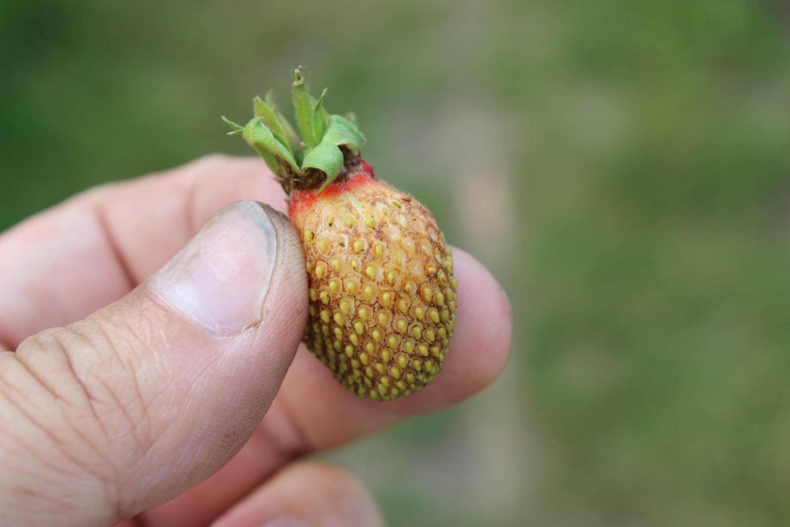 Трипсовые следы видны на Флоренсе на красной ягоде.