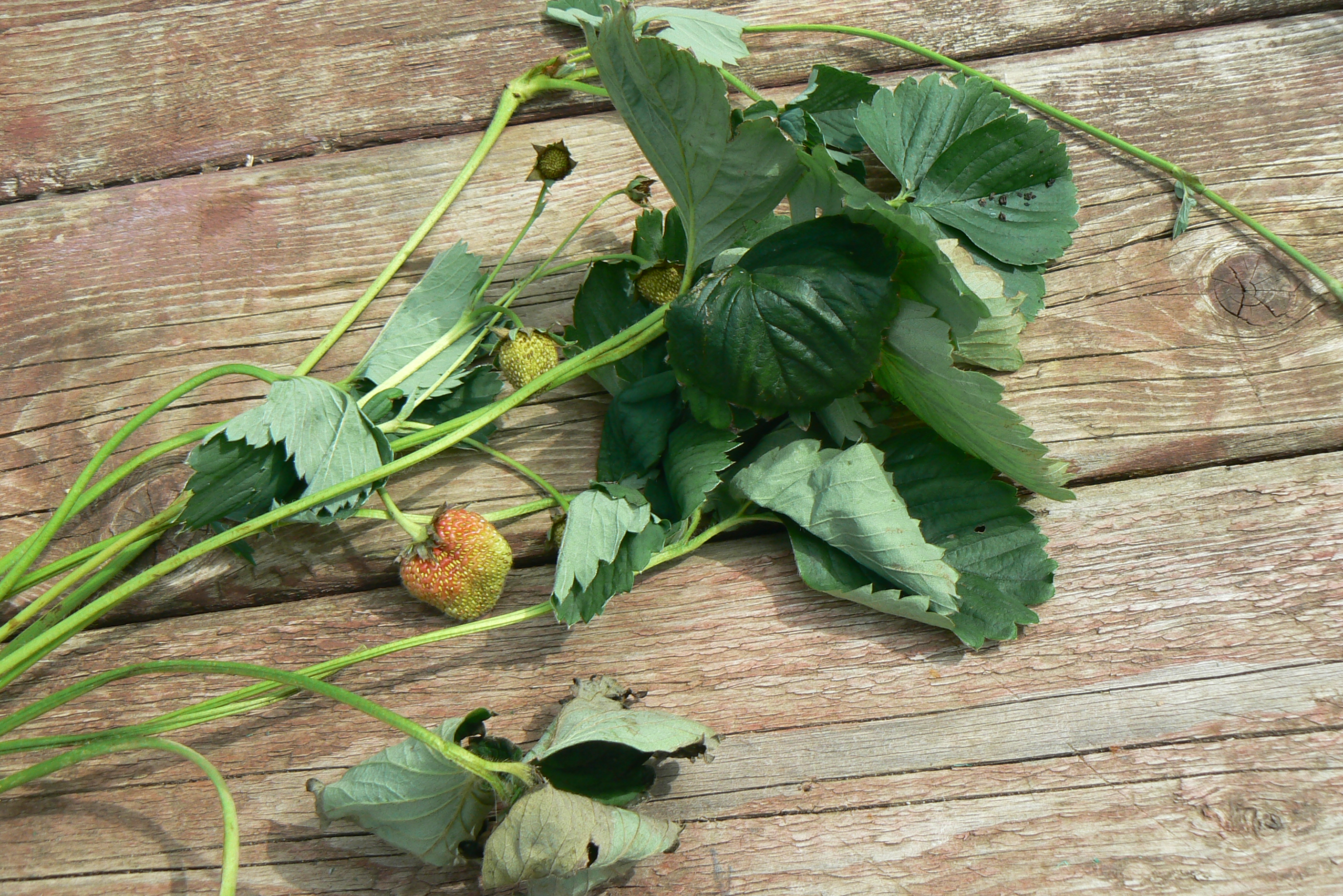 Увядание... Значит, из 4-х заболеваний("ходовых", трипс не рассматриваю) это - не Серая гниль, а либо Фитофтора, которая cactorum, либо Фитофтора, которая вызывает покраснение центр. корня, либо Вертициллум. Дальше. У Вас завязалась ягода. Значит, Фитофтора cactorum, потому что из трёх оставшихся вариантов у Фитофторы, которая вызывает покраснение центр. корня и у Вертициллум(а) до цветоносов дело не успевает дойти - засыхают они.