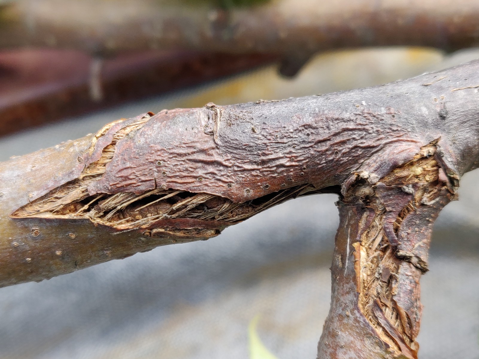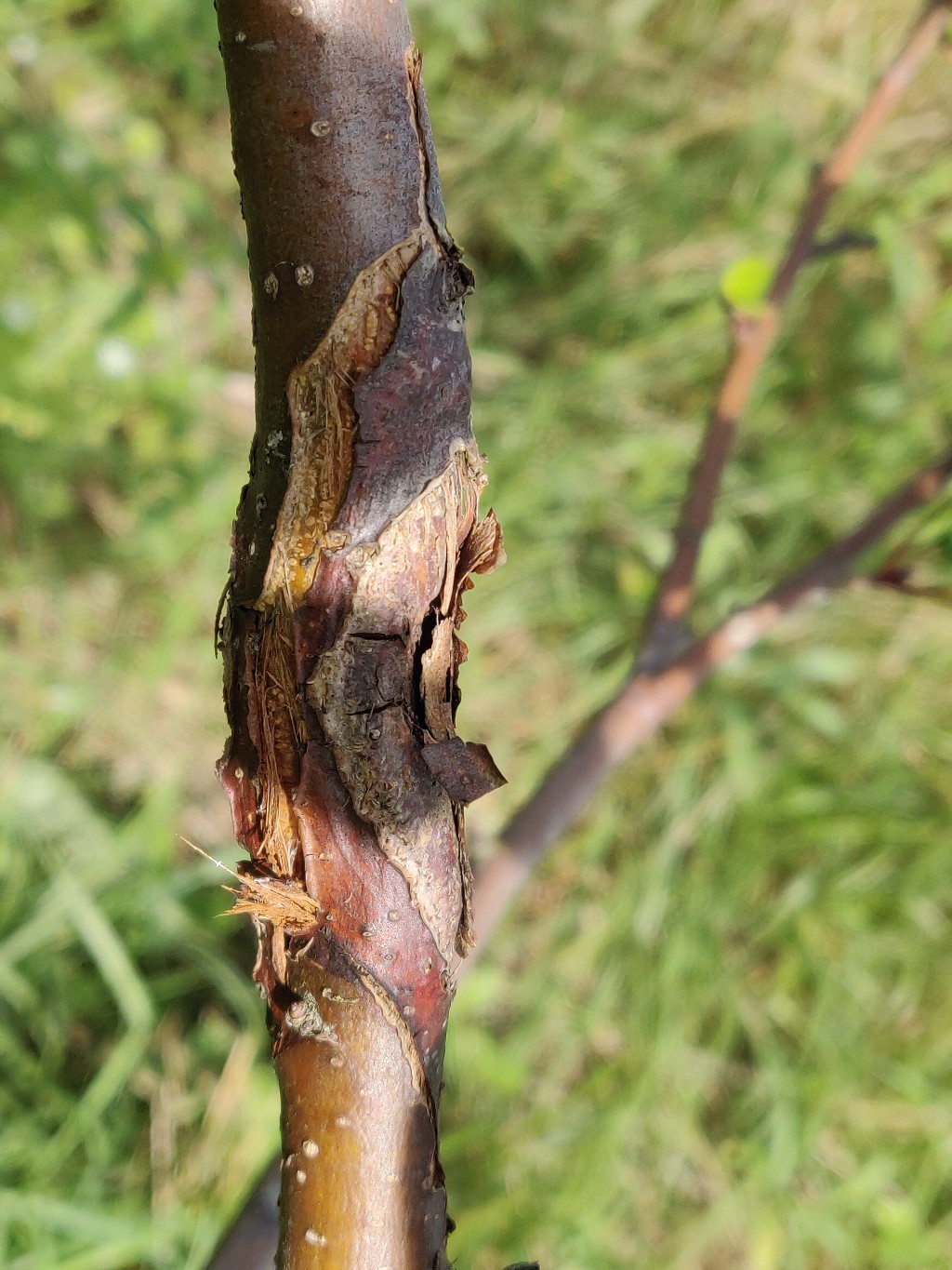 И ещё по фитопатологиям. В этом году после зимы начиная с ранней весны стал проявляться на плодовых странный характер повреждения сучьев. Происходит как будто взрыв изнутри , вплоть до раскрытия коры. При этом в месте "взрыва" ствол становится плоским, как бы растягивается в горизонталь.