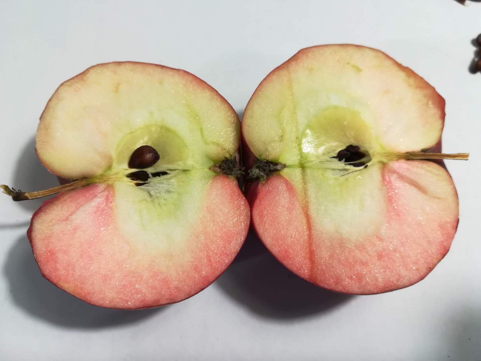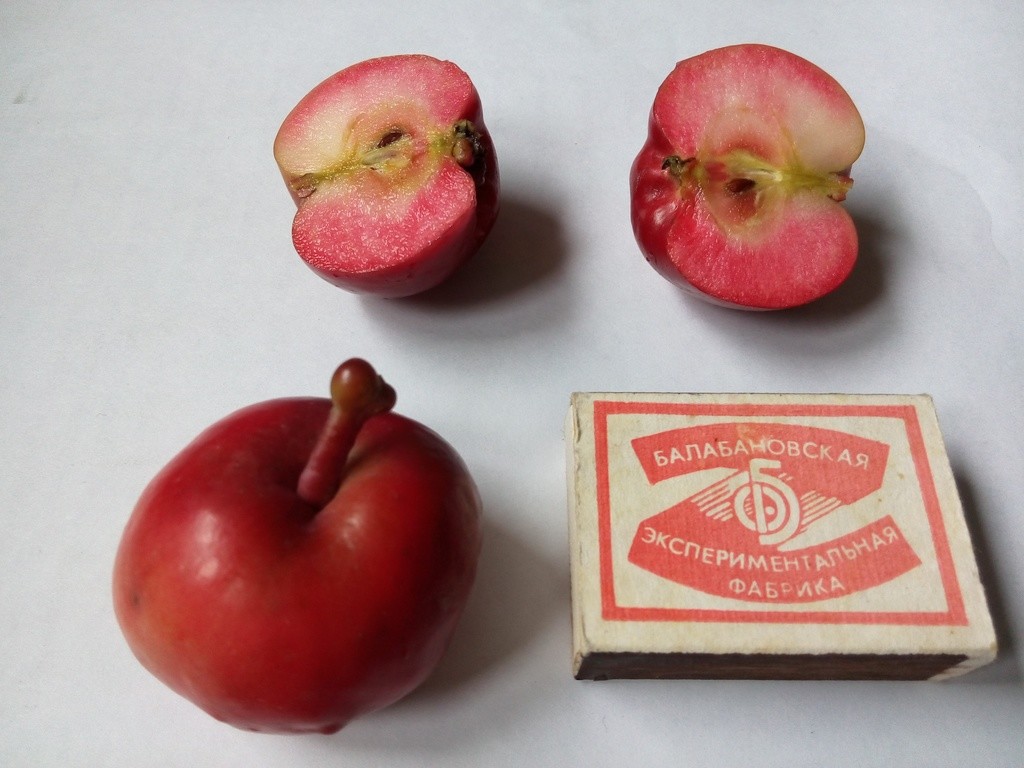 То есть, это плоды обычных зеленолистных гибридных форм яблони полукультурки, а НЕ красномякотных сортов.. То есть, часть яблок от этих ГФ имеет окрас мякоти разной интенсивности от розового до красного.