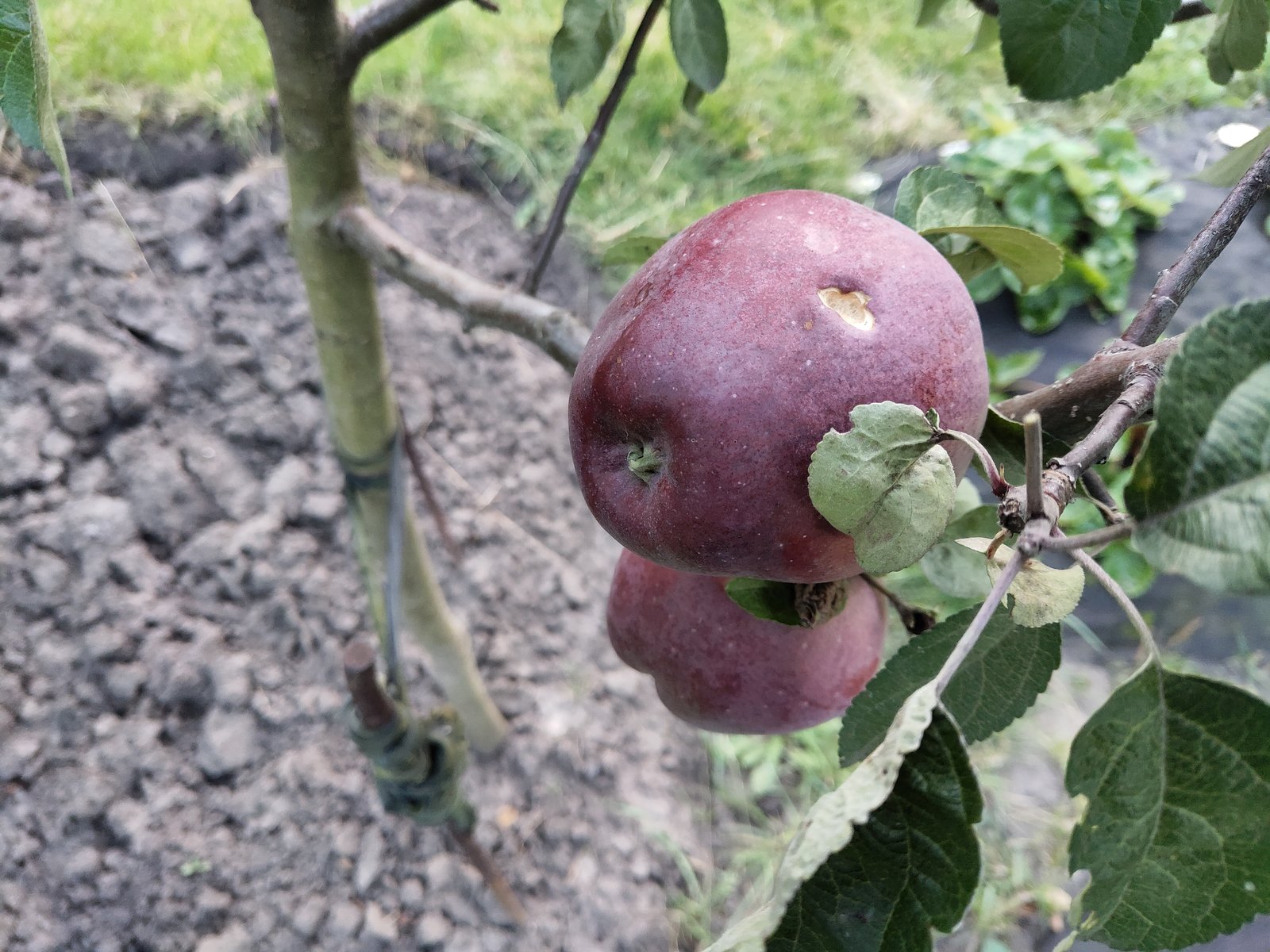 Дыямента осталось две сигналки из четырех, дерево они не перегружают, потому не спешу. Хочу дождаться момента когда упадет само первое яблочко. Это будет мне на следующий год маркер крайнего срока сбора.