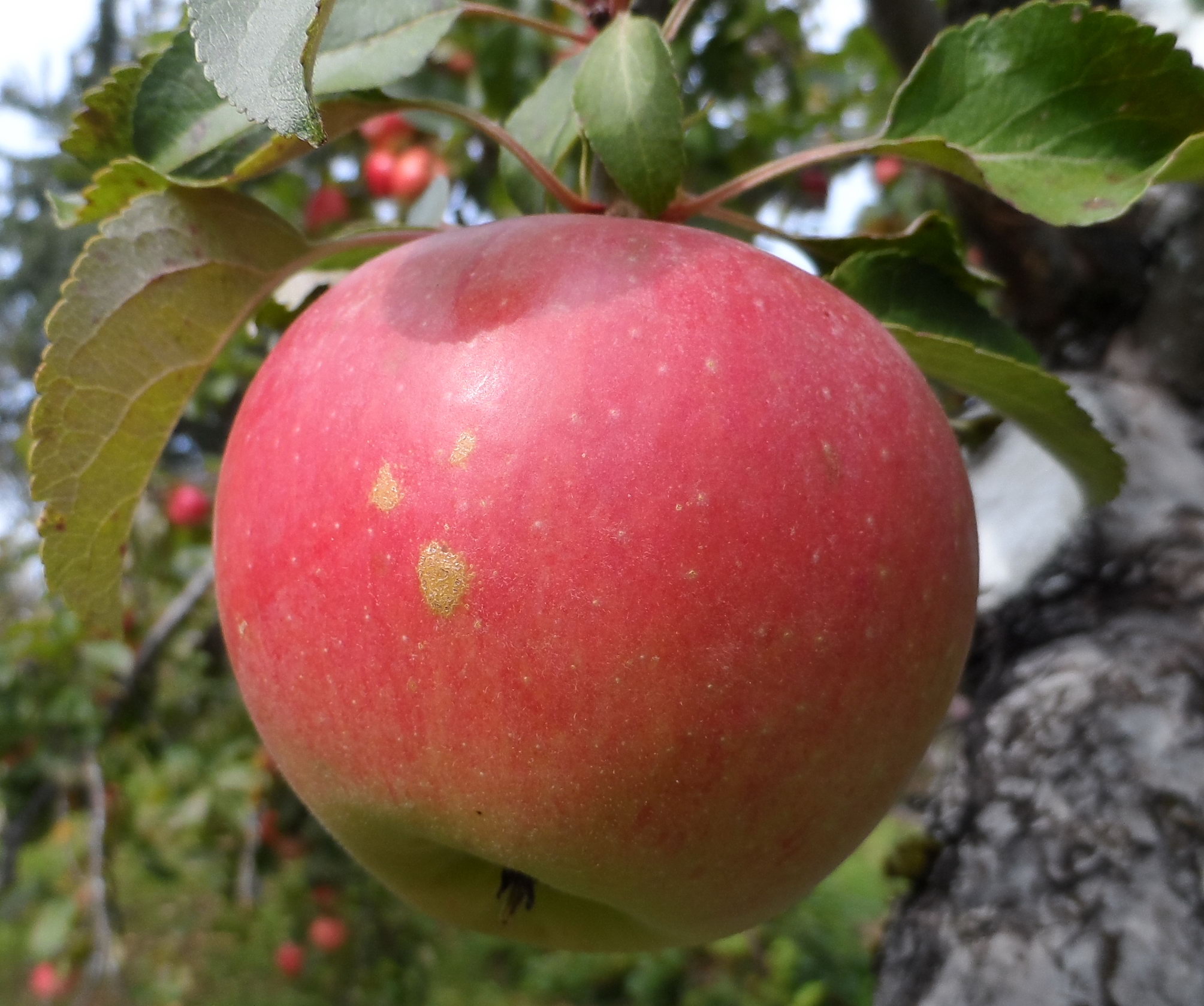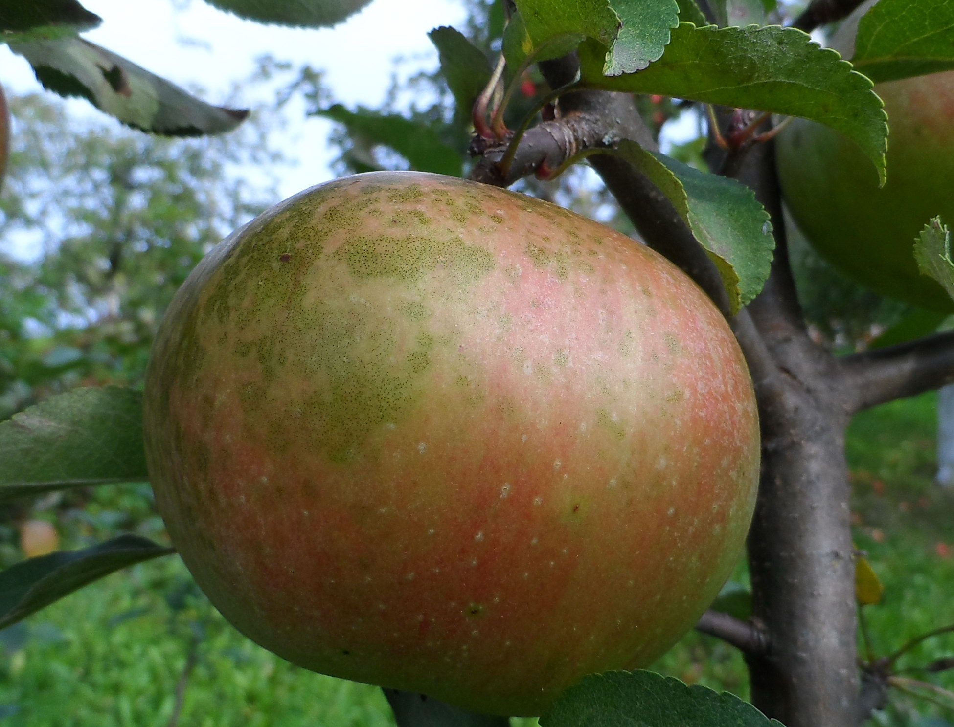 Яблоки этого же сорта на прививке в кроне старого Штрифеля: