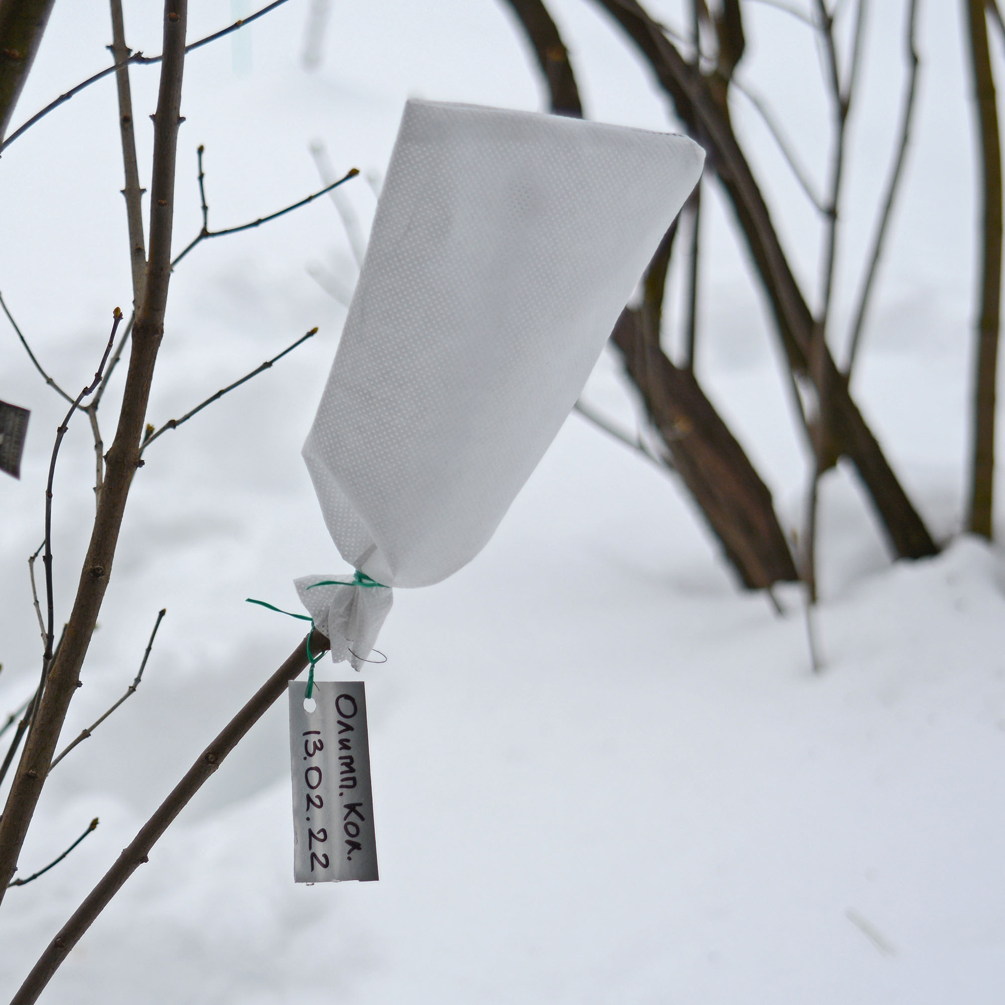 поверх обмотки прививочной ленточкой, трубочка из влажной белой бумаги на весь привой и