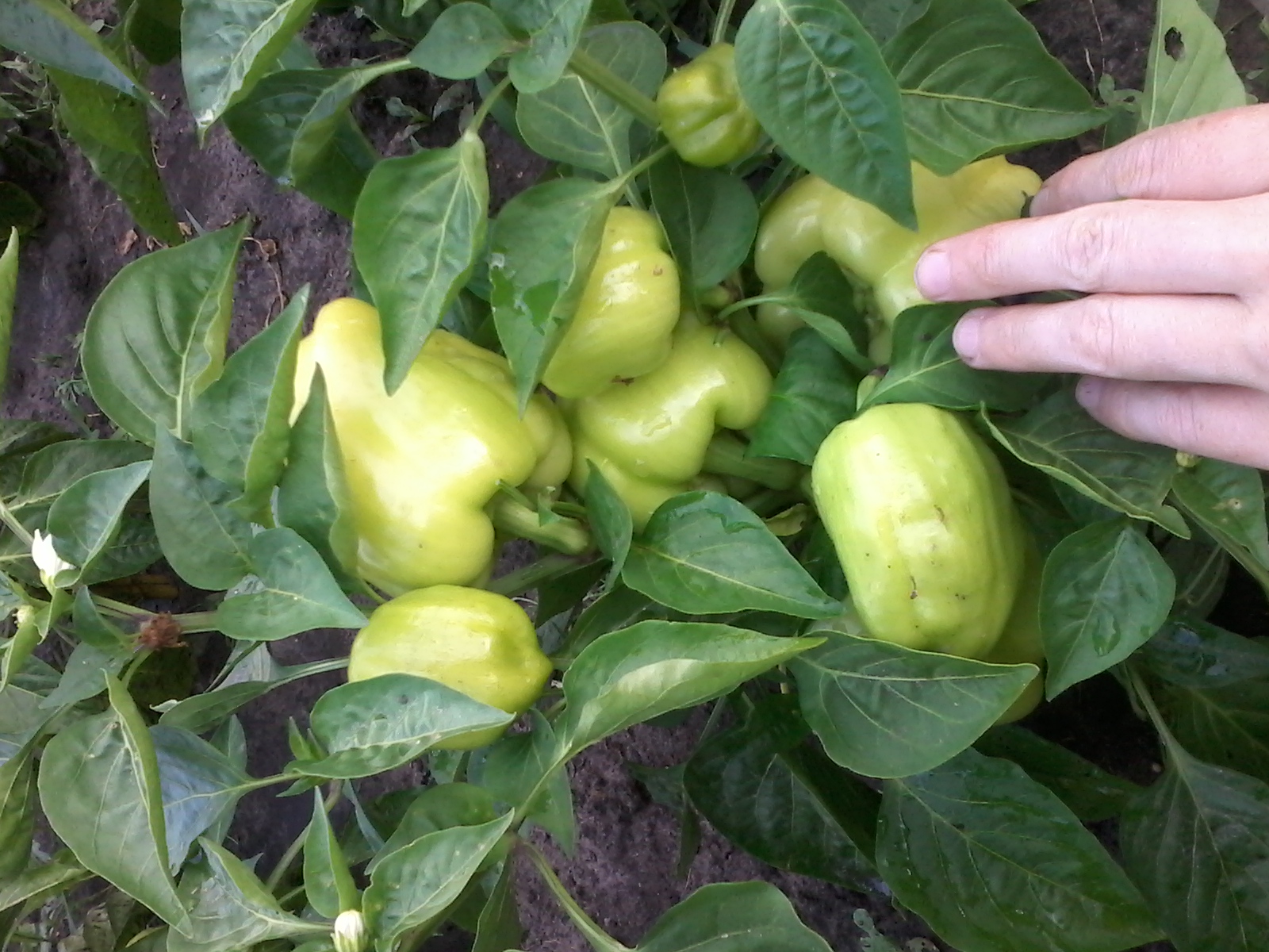 Болгарец у меня в ог, жалею, что в теплицу его не посадила, видимо, семян не возьму, они у меня на фаршировку зелеными уходят, не успевают зреть.