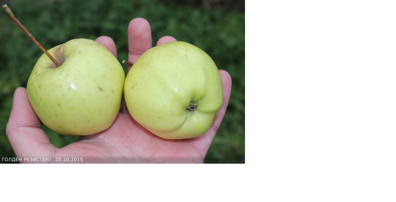 Голден Резистент это польский сорт.. (и на 1/4 Антоновка), по вкусу.. вот Сергей всё правильно написал, и форма там похожа и плодоножка.. только цвет не желтеющий.