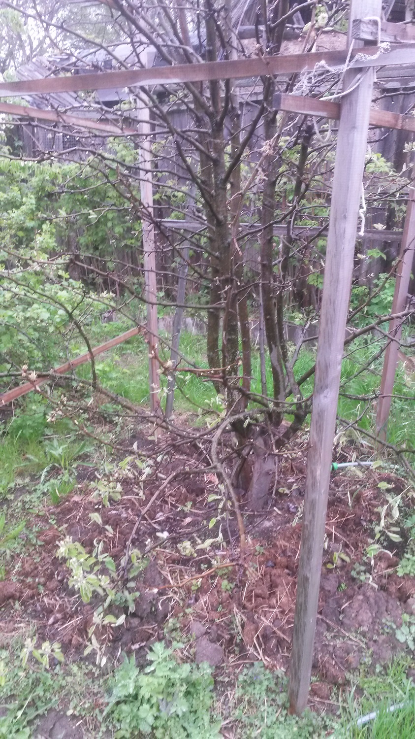 Штамб был побелен, на подвое (сеянец алычи) ниже места прививки (см с 25 от земли) образовались 2 некрасивых разрыва коры, так что...