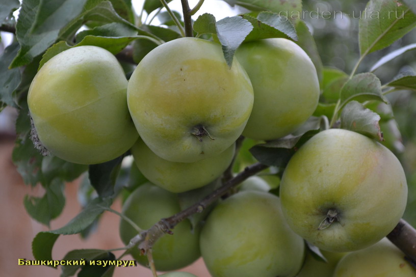 Позиционировался в Башкирии, как "апгрейд" сорта Уральское наливное(рис.1). Хорошо вызревшие плоды в отличии от УН действительно наливные и имеют вкус на 4,2 балла. Некоторые плоды имеют тусклый розоватый румянец(рис.4), что собственно не очень характерно для сорта.