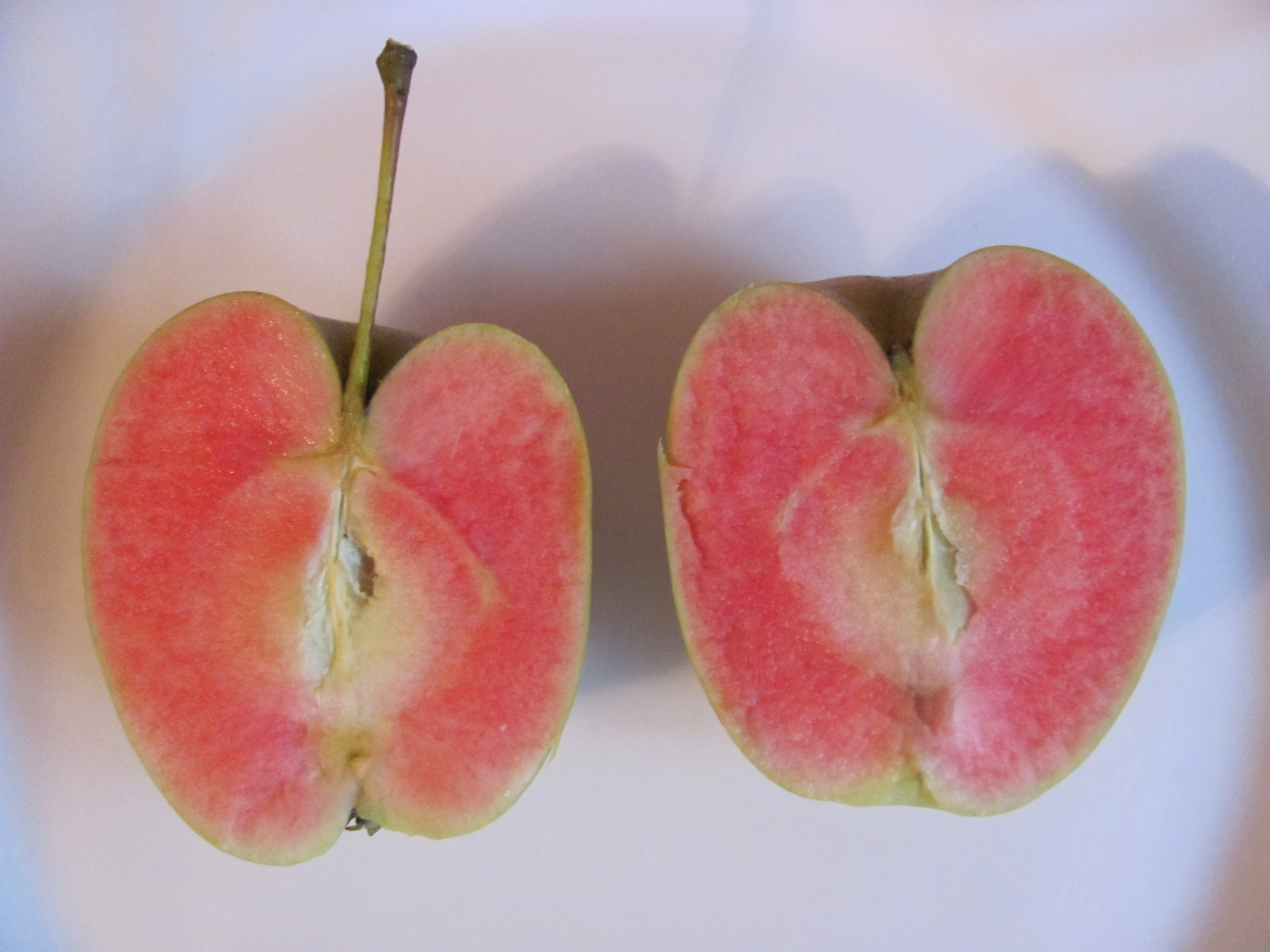 Позднеосенний сорт американской селекции. Плоды ниже среднего размера, конической формы. Окраска кожицы зеленоватая, окраска мякоти - ярко-красная. Мякоть хрустящая. Вкус сладкий, ароматный при полном созревании, терпкий.