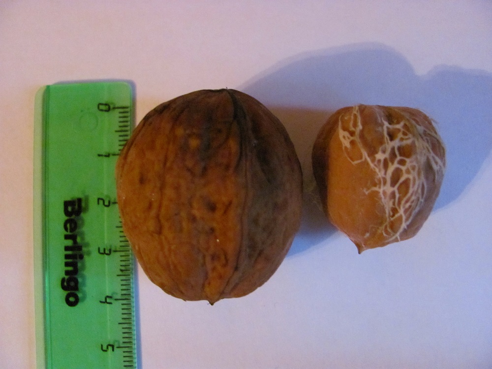 Крупные ,тонкокорые ( руками "лущаться " ) хорошие орехи ..и ядро неплохое . По характеристике - одна из зимо-морозостойких форм , деревья ( именно эти ) проскочили в 2006 году морозы под -40 ! Вылетела 2-3 х летняя древесина , но ни одно дерево не погибло ...Урожайное , ...было сказано , что в условиях Подмосковья урожай будет выше - более влажно . Орехи с одного дерева а форма скачет- уже , толще ...
