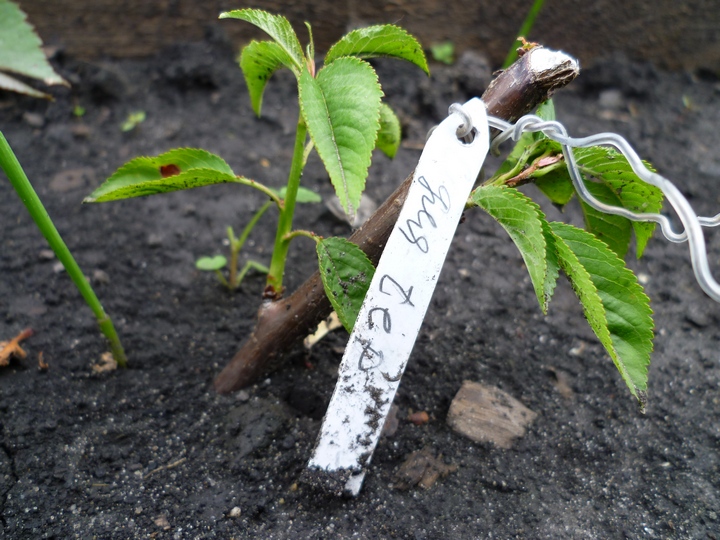 В сентябре того года мне передали черенки ВСЛ2 ,весной так закрутился с прививками,что забыл про эти черенки,а когда вспомнил подвоев вишни уже не осталось что бы привить.Что бы не пропадать черенкам решил их посадить наклонно как смородину,никакими стимуляторами роста не обрабатывал,просто воткнул в школку без всяких укрытий,на удивление все пошли в рост.