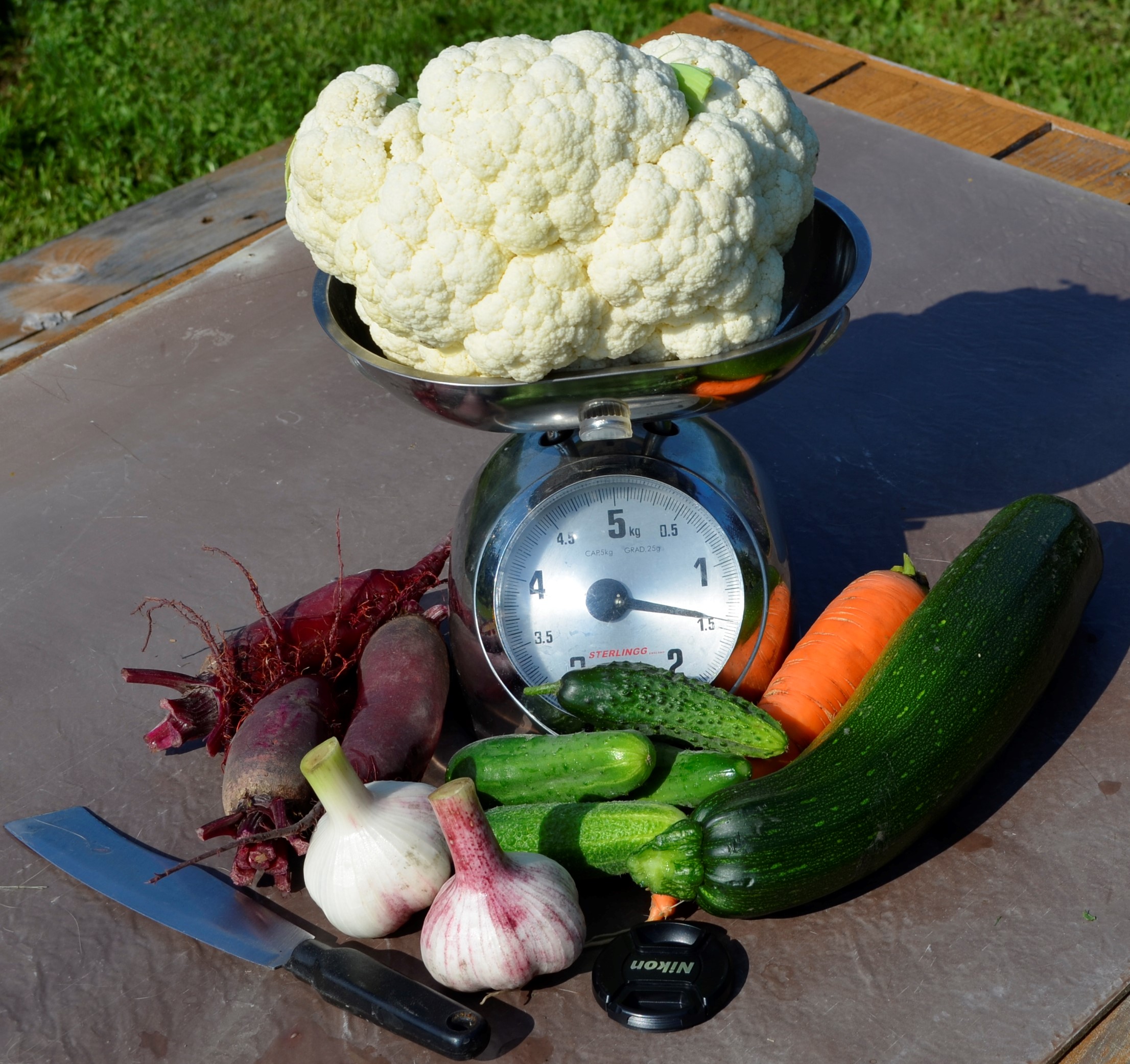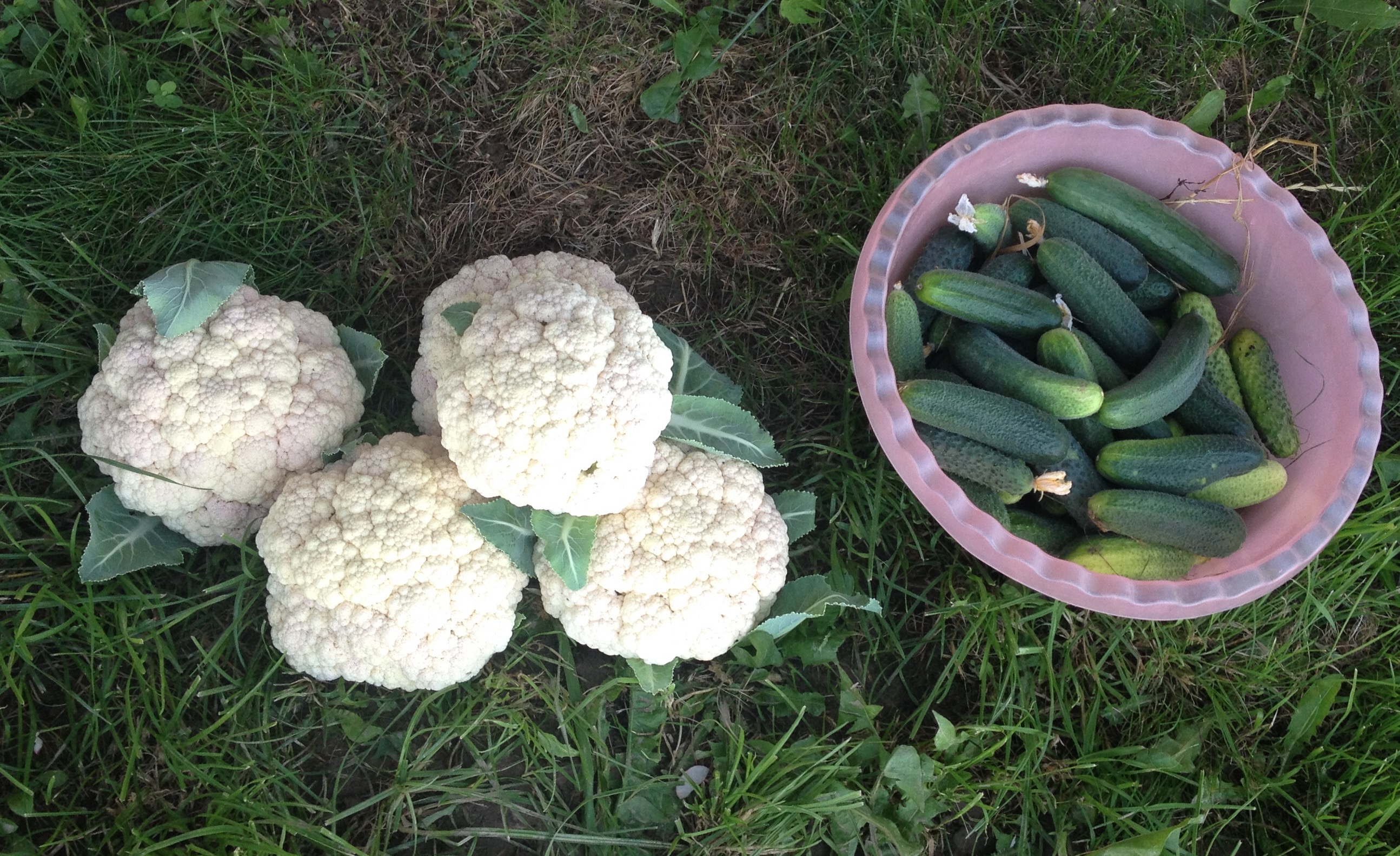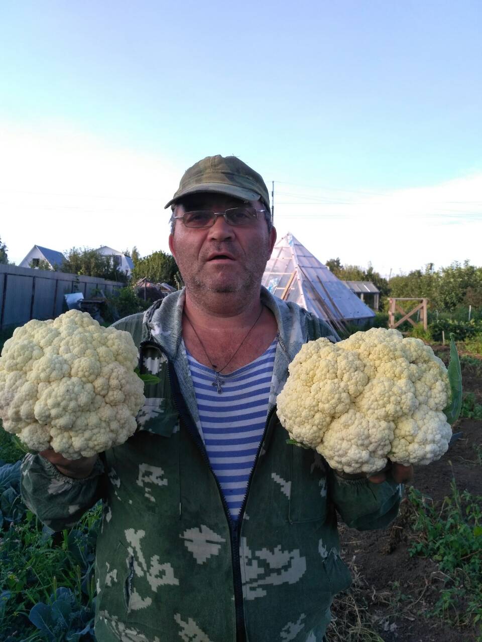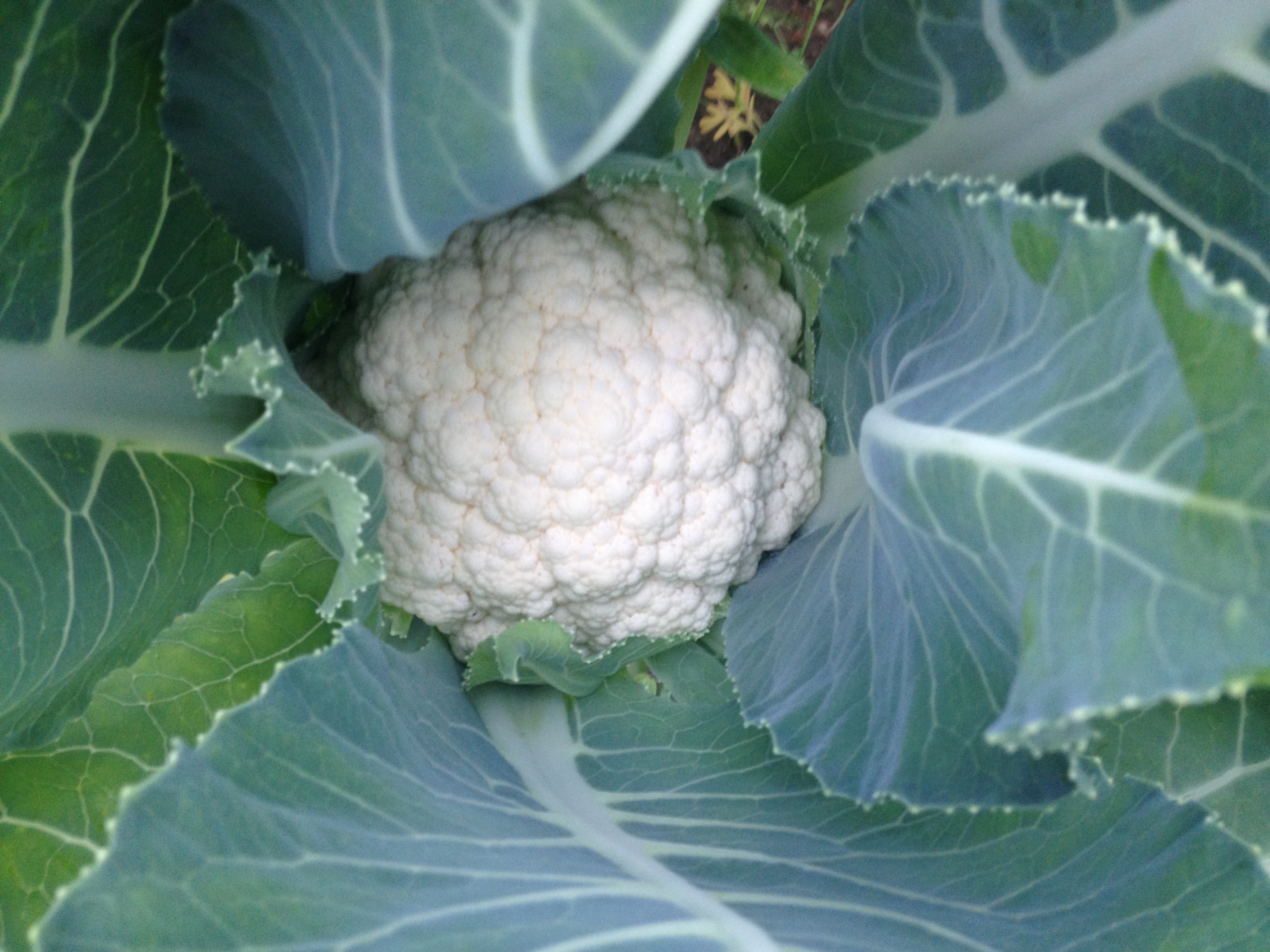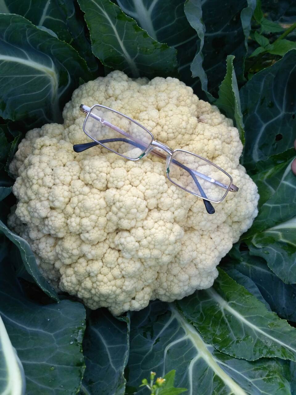 Цветная капуста у нас в этом году просто огромных размеров.Мимо грядки просто так не пройдёшь,только и слышно листья - хрусть-хрусть.Немудрено -