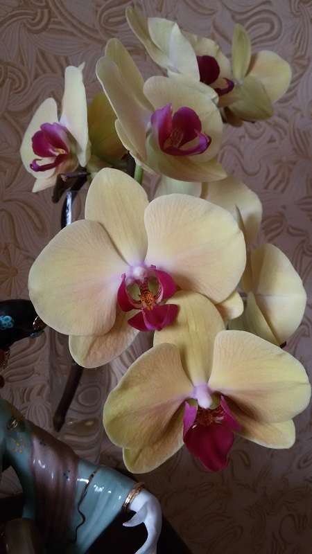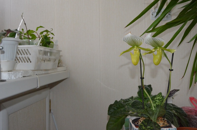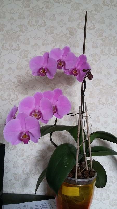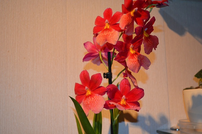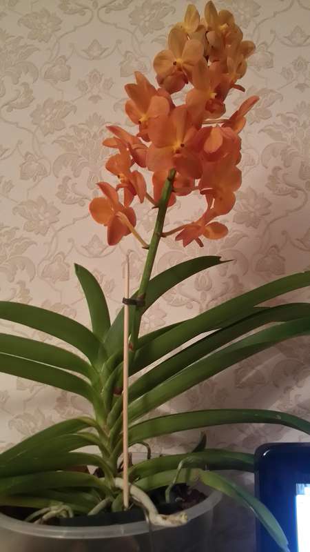 Цимбидиум тоже есть, большой куст, растет в кокосовой стружке в горшке, сейчас не цветет, если интересно, завтра сфотографирую.