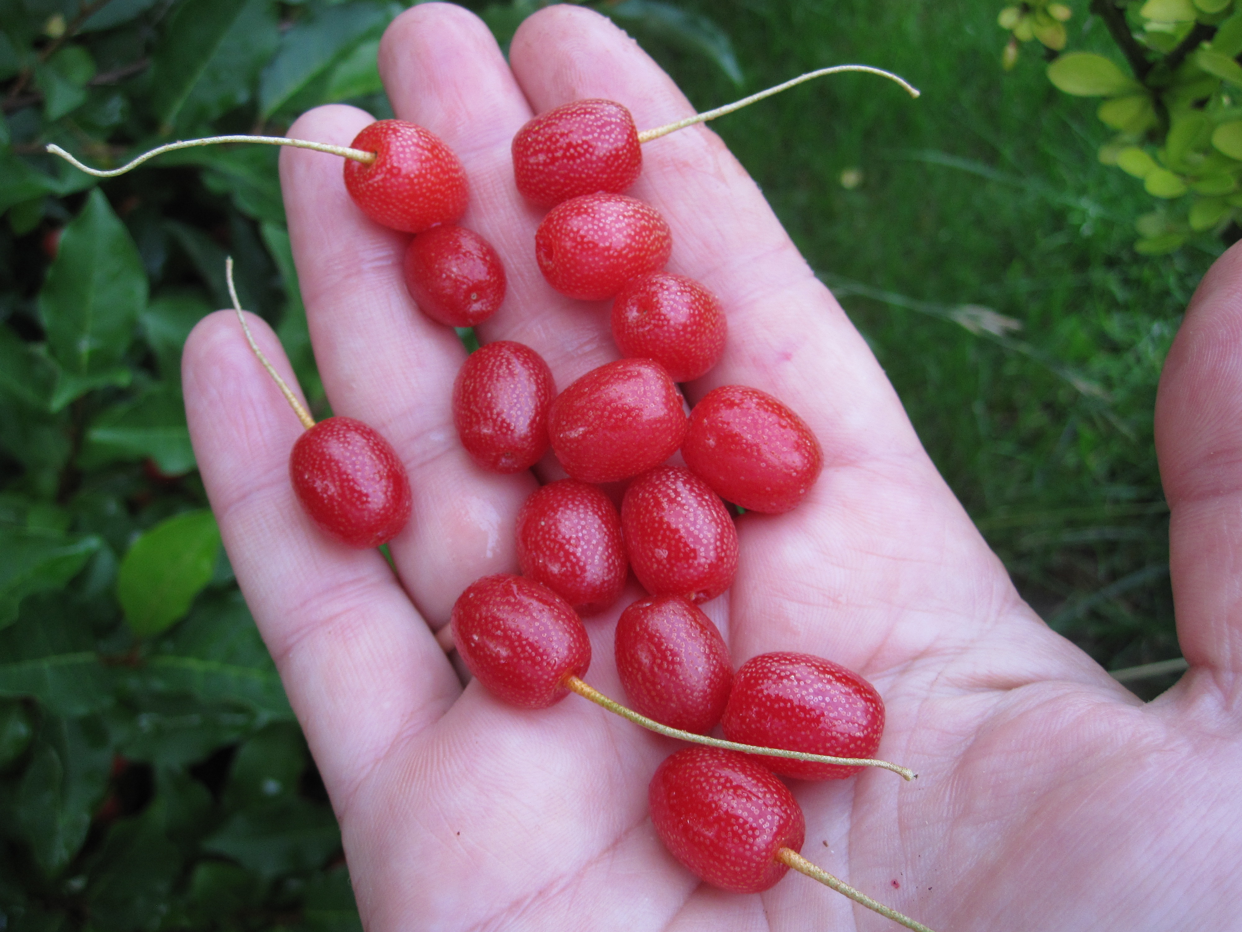 Посадила гуми 3 года назад 2 кустика малипусеньких, на экзотику потянуло . один не перезимовал, другой сидел без движения, но с зелёными листиками. Забыла про него даже а в этом году нарастил хороший кустик. Обкашивала травку под ним и увидела ягодки уже спелые и вкусные, горсточку собрала. Читала,что ему опылитель нужен, поэтому сажала 2, вот сильно удивилась ягодкам, просто не ожидала поглядим, что выдаст на следующий сезон