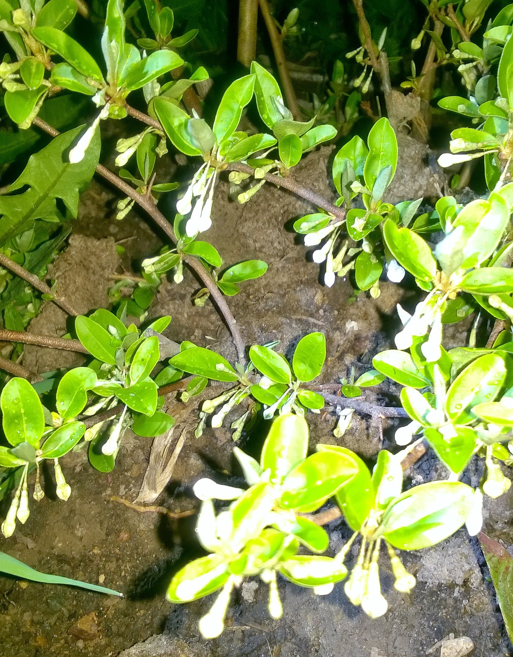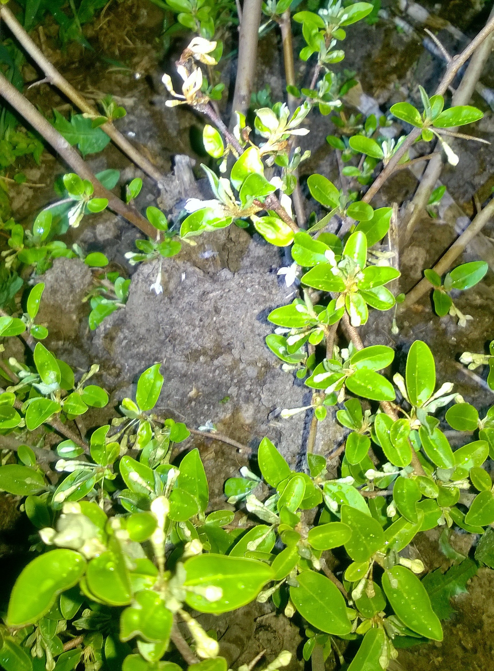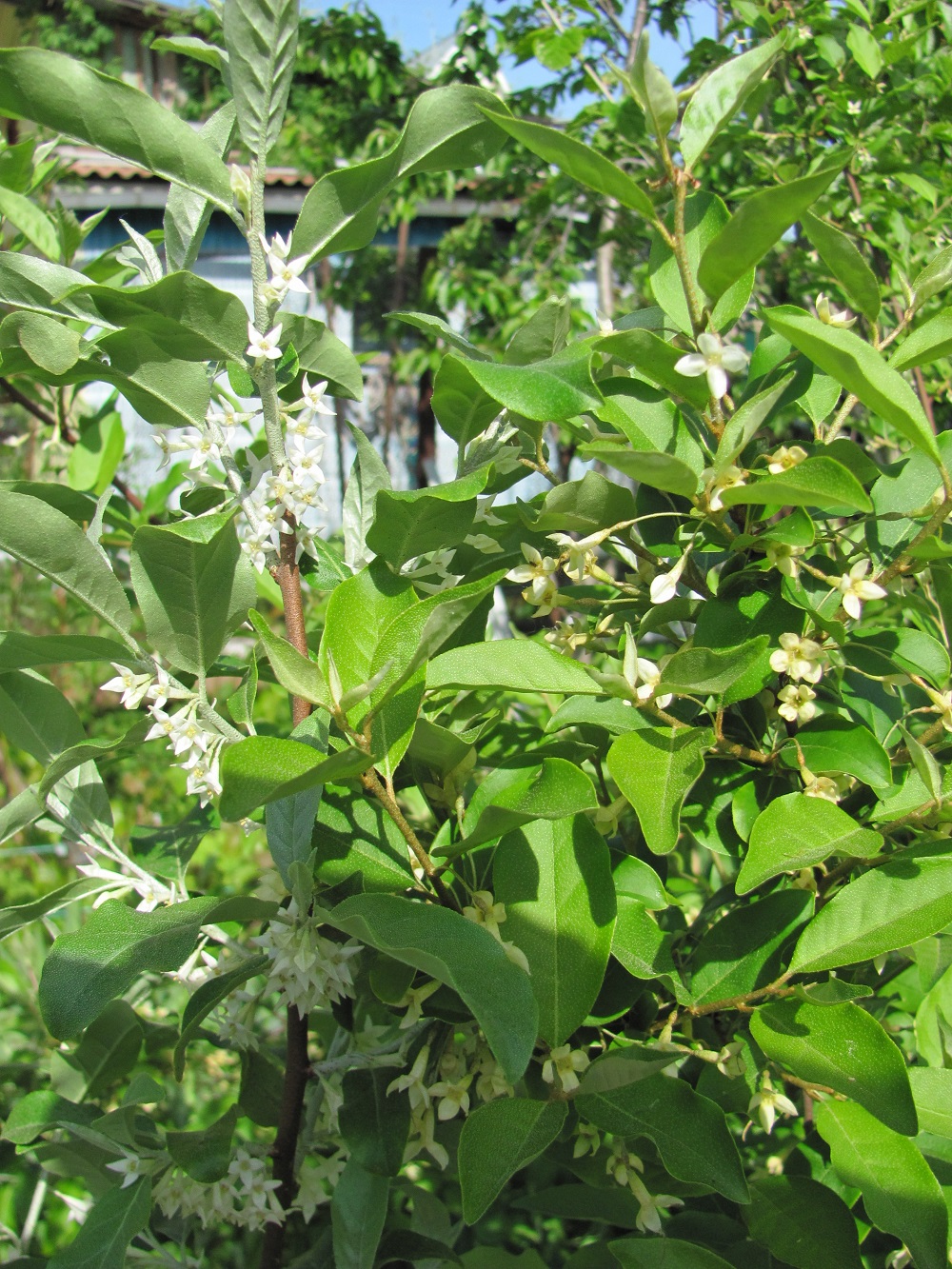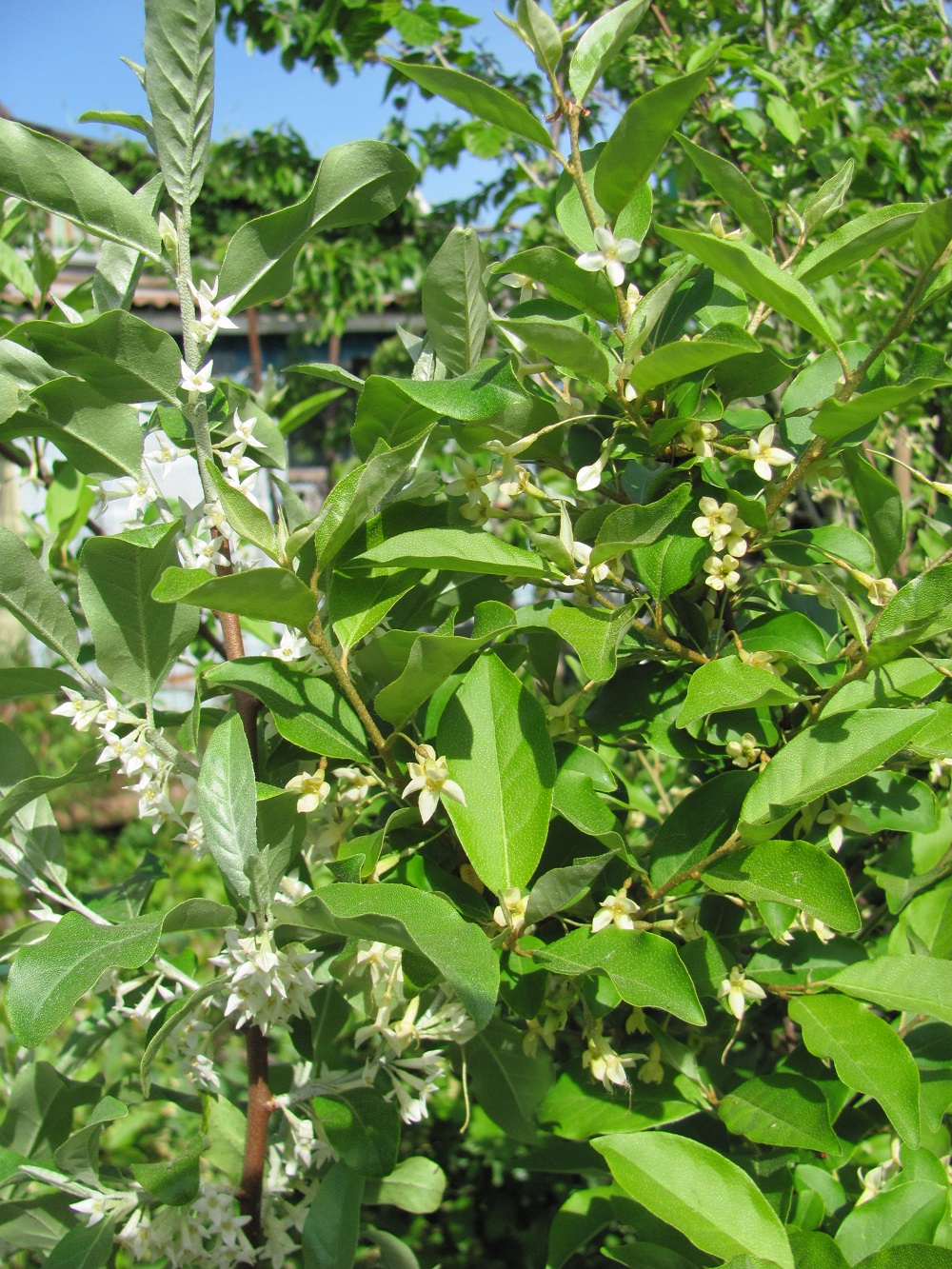 Осенью посаділ кустик гуми, ветки длиной до 30 см. Не накрывал. Снега зимой не было, сомневался, перезимует ли только посаженный. Сегодня обнаружил, что он очень множественно цветёт мелкими белыми цветками по всем веточкам при ещё недораспустившихся толком листьях.