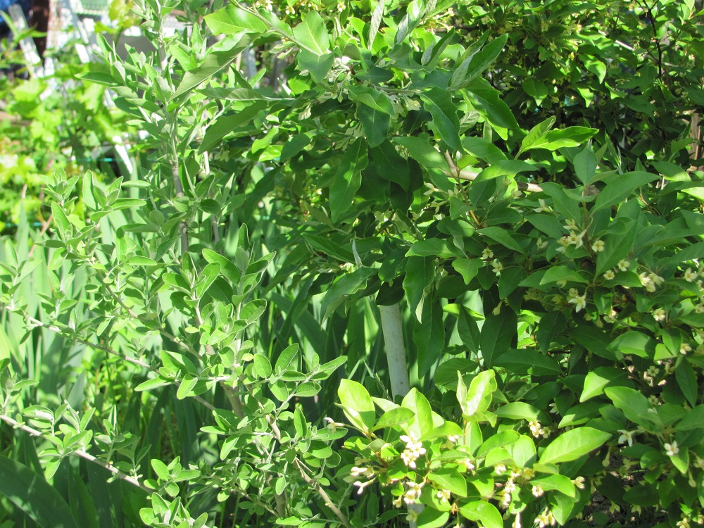 Здравствуйте!может кому понадобится для опознания,акигуми(Лох зонтичный) и гуми(Лох многоцветковый),последний привит на куст первого,сожительствуют,так сказать..)) гуми начинает цвести дней на десять раньше,ну и прочие внешние отличия тут хорошо видны