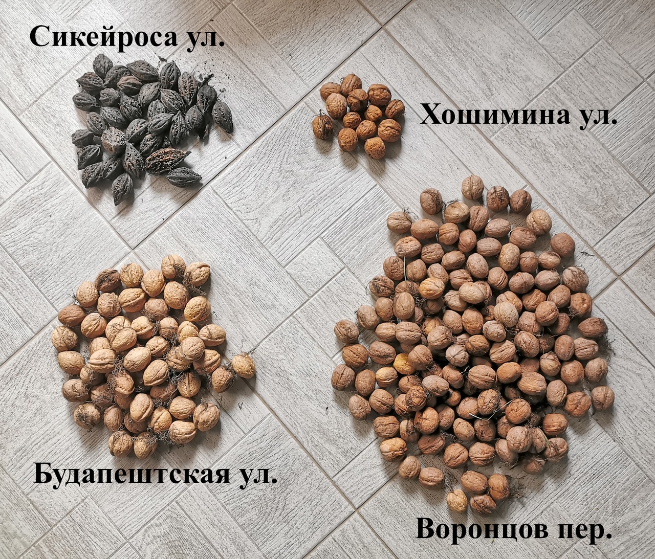 Потом первая электричка метро и на другой конец города, на Просвещение, искать новые, ещё никогда не виданные мною орехи, как имея точную информацию о местонахождении дерева, так и весьма примерную, к примеру, просто название улицы, которую в итоге надо обойти всю.