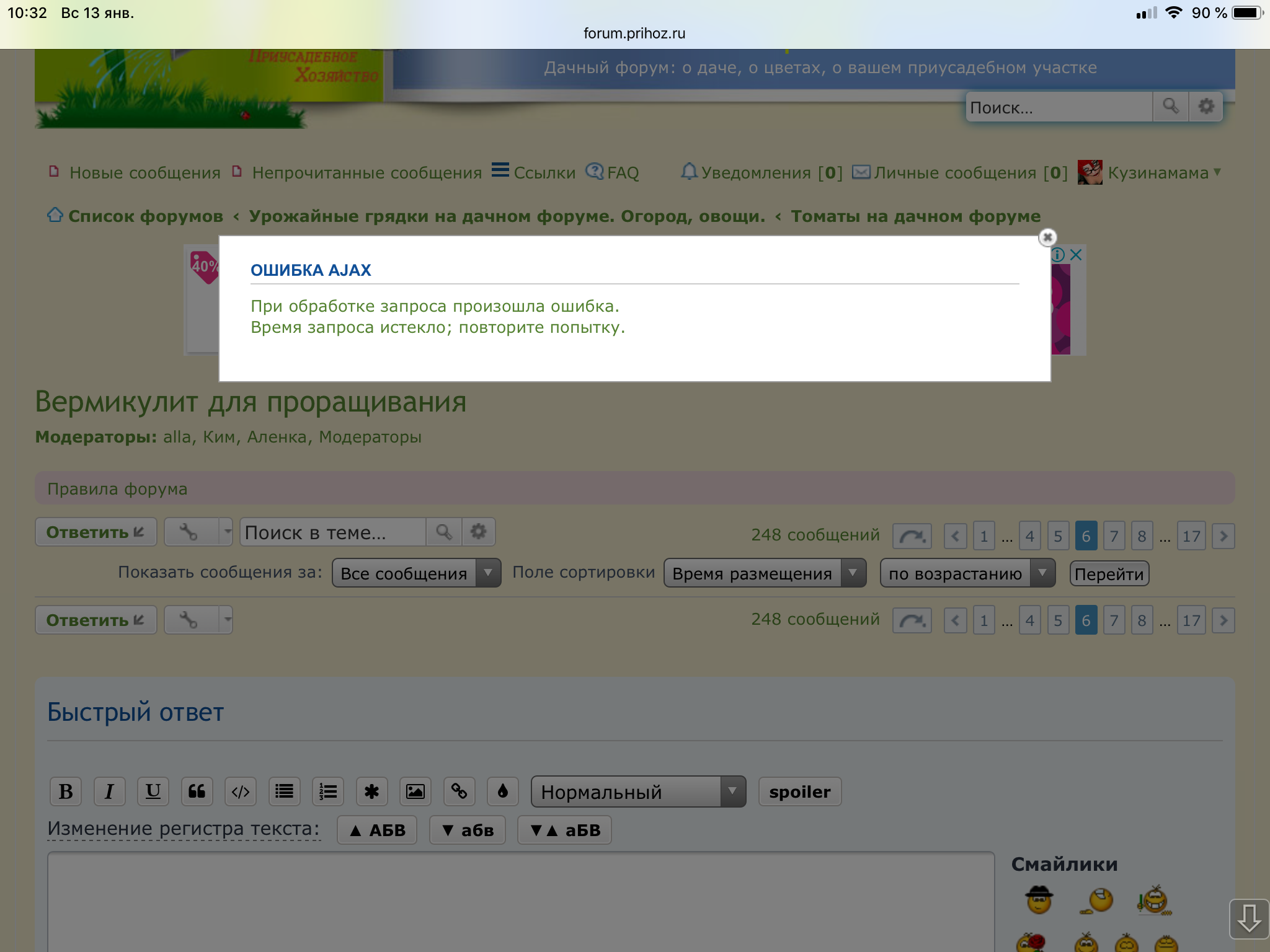 По ссылке , что дана в теме "Посевная" я тоже не могу перейти на другую страницуКузинамама писал(а): ↑13.01.2019, 10:34 А у меня при попытке перейти с 6 на 7 страницу вот такое выдаёт
