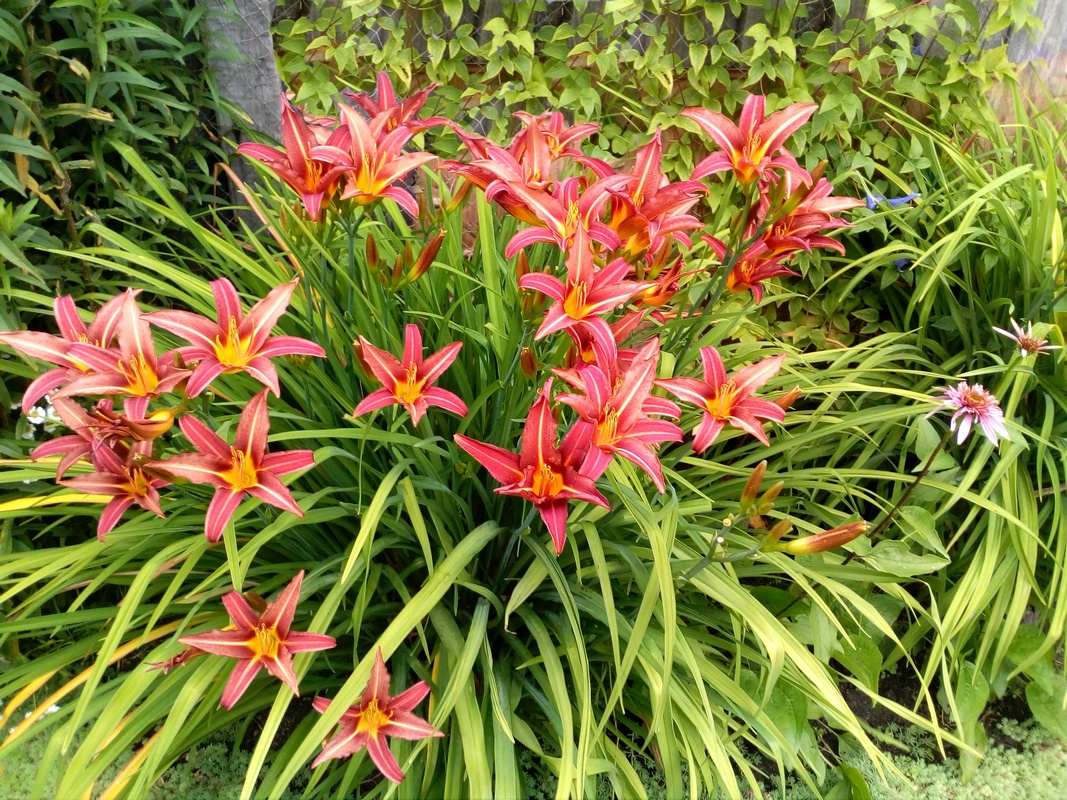 Много лилейников будешь удалять? Я уже пару лет назад стала некоторые отсаживать подальше, в малиннике, например, некоторые растут. Вот почти убрала Ред Отум, осталось два сильно урезанных кустика. Они не очень крупные. А стала их хорошо кормить - вон какие красивущие стали.