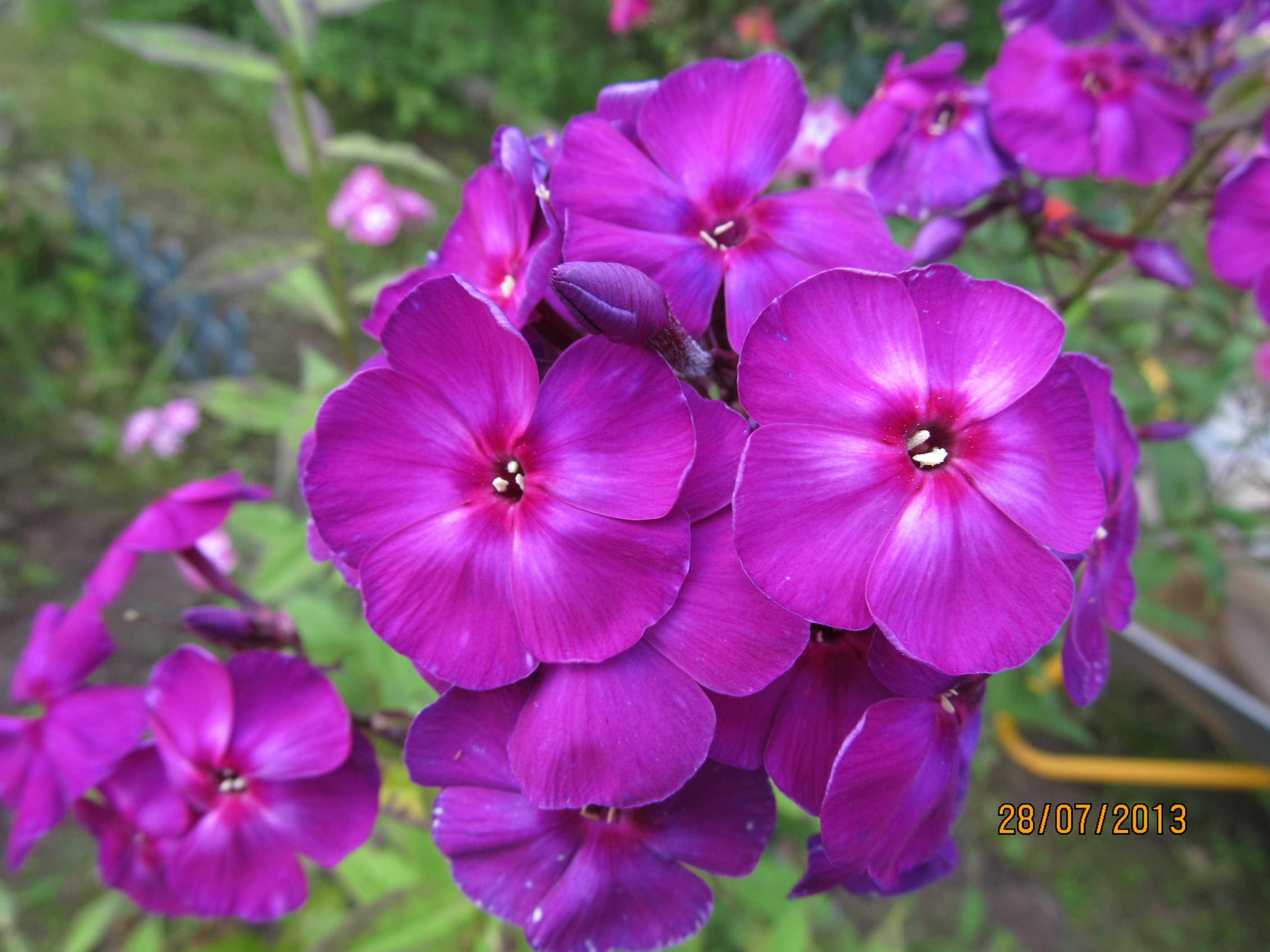 Этот сад (дом в деревне) мы купили в начале 12г. Флоксы (как и все остальное) были посажены весной-летом 2013г., несколько растений - с 2012г. Соцветия были маленькие, только чтобы соответствие сорту определить. Я их не фотографировала. Предыдущий сад у меня был 17 лет назад и там не было флоксов. Так что флоксовод я начинающий