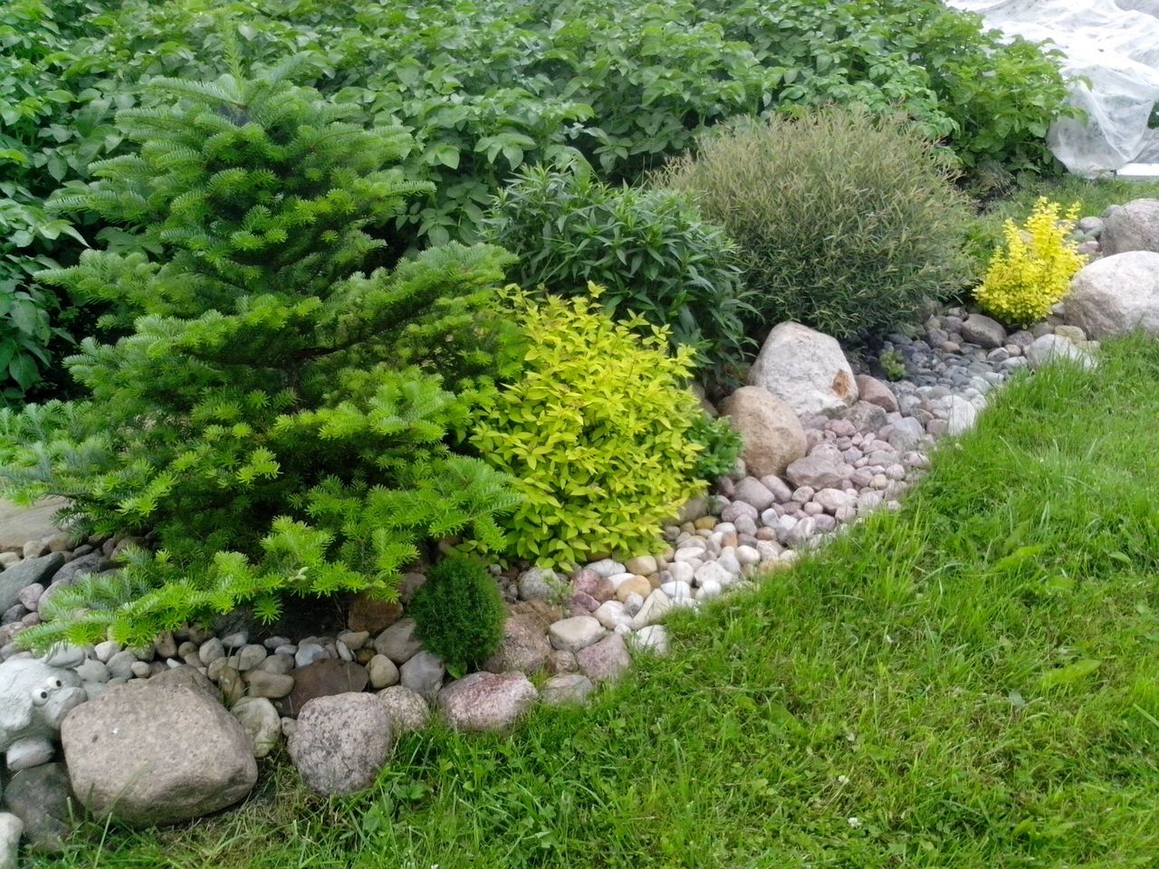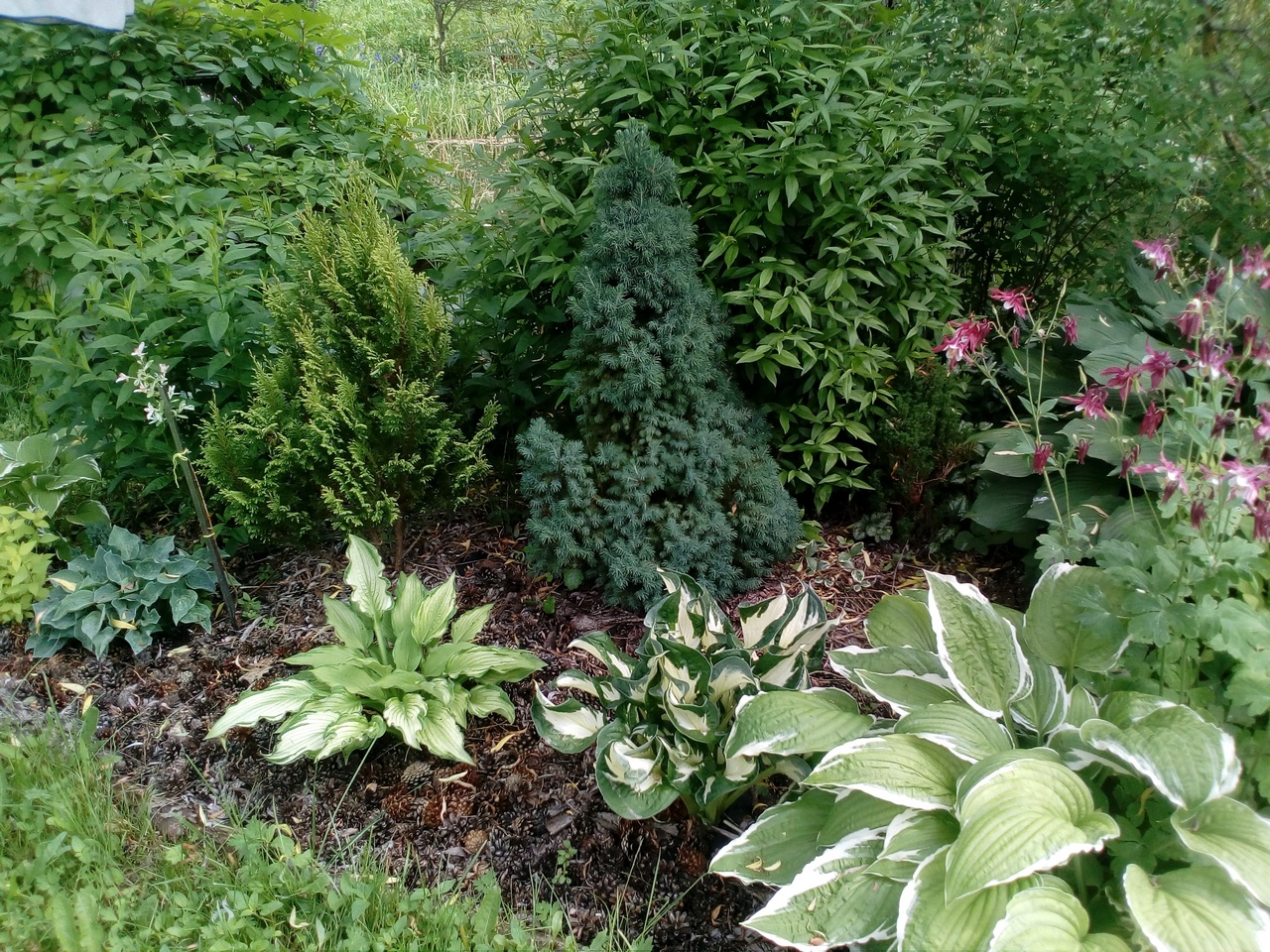 Я хотела сделать уголок с рододендронами, а им нужна полутень и кислая почва. Вот и решила объеденить тень от ёлки и то, что им всем нужна кислая почва.