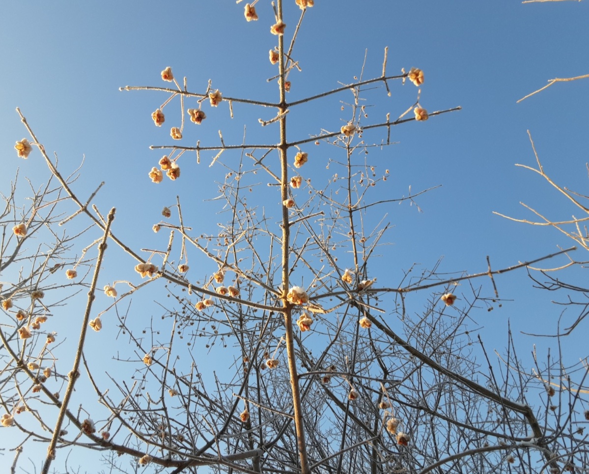 Бересклет Гамильтона. Тоже принарядился, как ёлка игрушками.