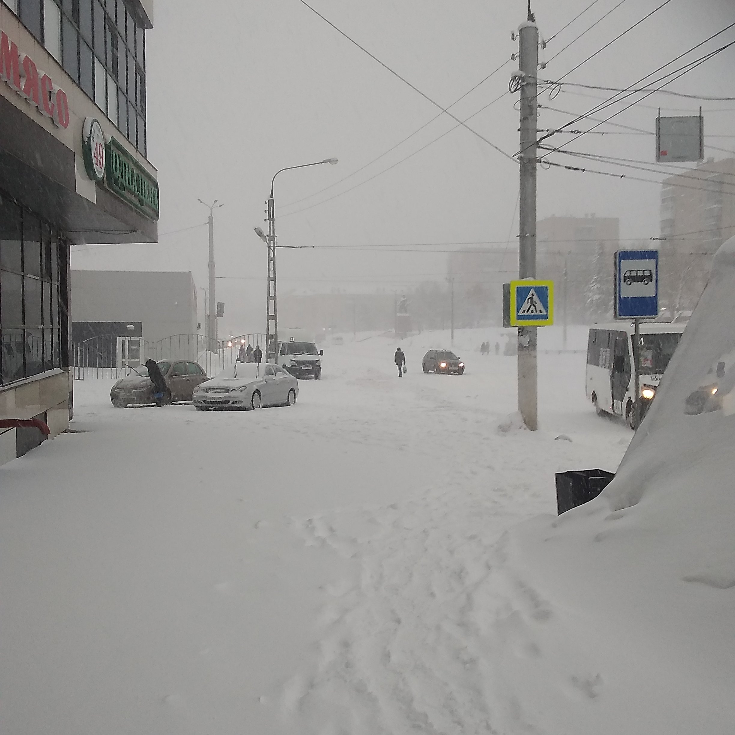 Снегопад настолько сильный, что местами парализовано трамвайное движение, а дорожники еле справляются!